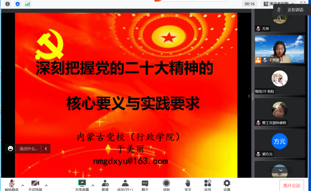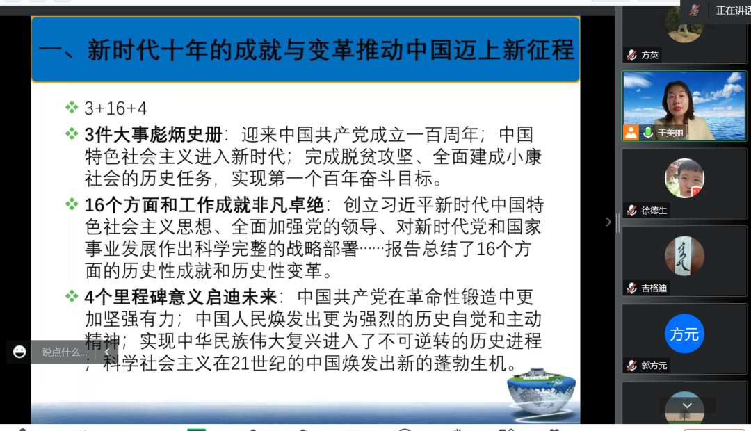 为深入学习贯彻党的二十大精神实质和深刻内涵,掀起学习宣传贯彻党的二十大精神热潮,教育引导全院师生把思想和行动统一到党的二十大精神上来。12月9日下午,yl6809永利官网集团党委召开了学习贯彻党的二十大精神宣讲会,邀请内蒙古自治区党校党史党建教研部于美丽副教授作宣讲报告。学院全体教师、学生党员及发展对象以线上形式收听收看了此次报告,学院党委副书记、副院长徐德生主持。