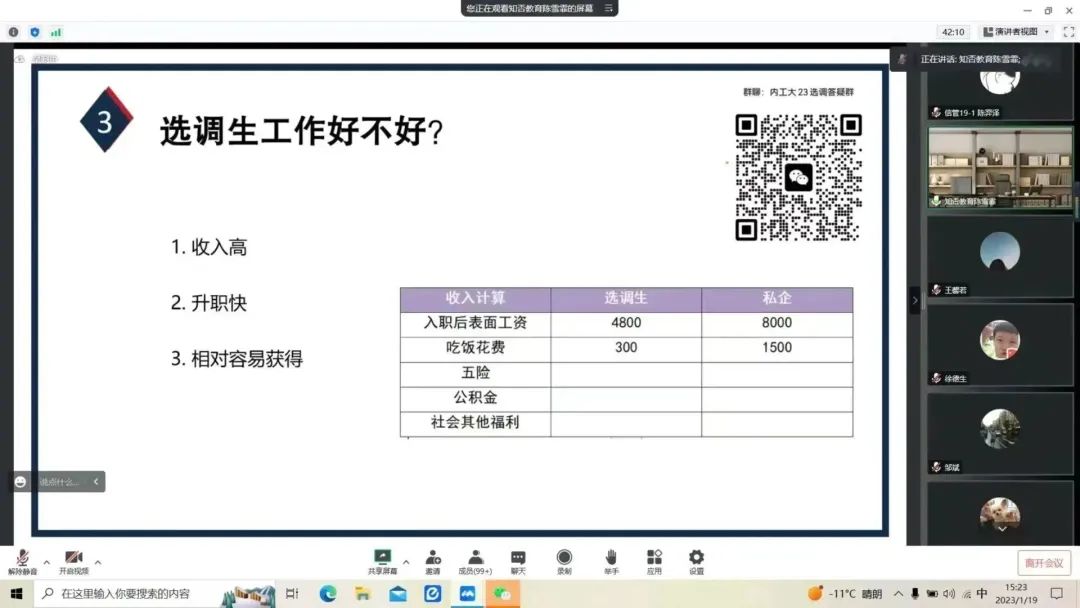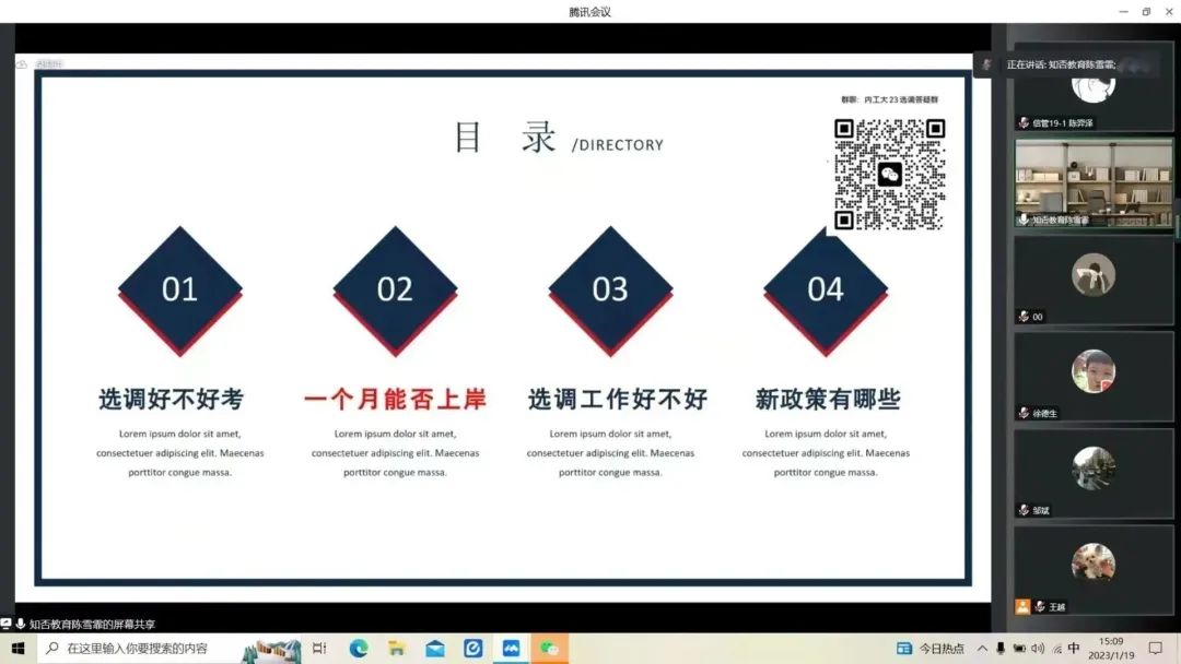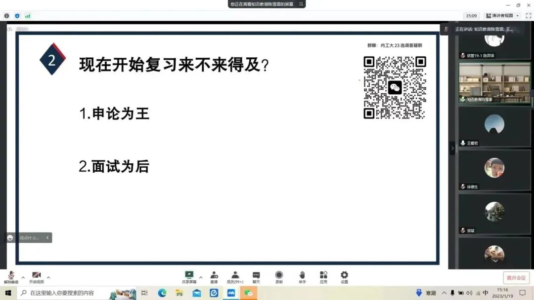 1月19日,yl6809永利官网集团举办2023年选调生考试报名指导线上讲座。学院党委副书记、副院长徐德生出席,我院校友、知否教育负责人陈雪菲主讲,2021届、2022届、2023届毕业生参加。讲座由学院就业办公室负责人邹斌主持。