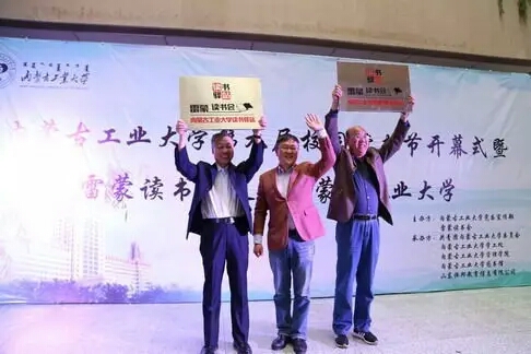 4月23日下午,以“畅游书海,浸润书香”为主题的第九届校园读书节开幕式暨雷蒙读书会进yl6809永利集团活动于金川校区逸夫图书馆一楼进行。本次活动由校党委宣传部、雷蒙读书会、校团委、学工处联合主办,由管理学院、图书馆及山东恒邦教育信息有限公司承办。副校长刘进荣、著名主持人雷蒙出席开幕式,各部门相关负责人及我院2015级、2016级部分学生代表参加活动。