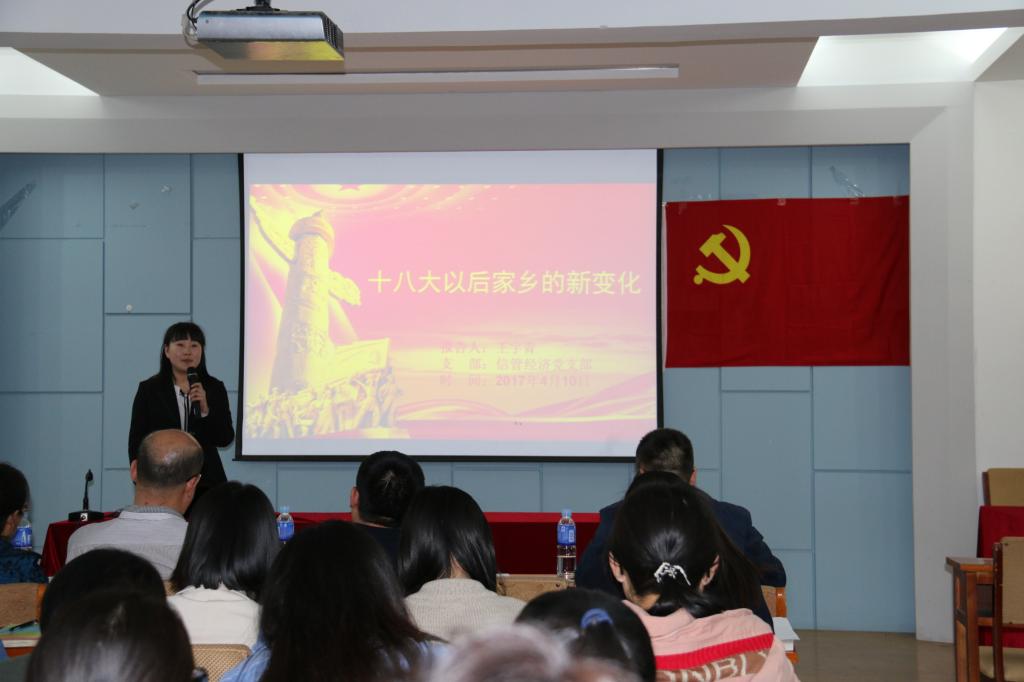 报告会上,经过各党支部评选推荐的12位学生党员做了调研汇报,以ppt的形式图文并茂的展示了十八大以来自己家乡政治、经济、社会、文化以及生态环境的新变化,深入挖掘了党的十八大以来所取得的重大成就。最终工管金融党支部的张璐以“十八大以来家乡的新变化――河北唐山”获得最佳成果奖,刘毅铭等同学获得了优秀成果奖。
