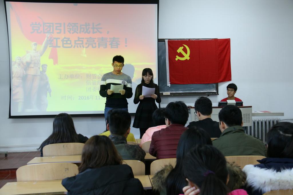 为了更好地促进党团建设,丰富同学们的精神文化生活,提高同学们对党团的认识,进一步激发同学们的爱国热情。2016年11月27日,由yl6809永利集团信管经济党支部、财管会计党支部、团委社团理事会联合主办的“党建带团建——知识引领成长,红色点亮青春之我爱记歌词”活动于新城校区管理学院主楼210拉开序幕,财管会计党支部书记李凯旋、组织委员王一丹,信管经济党支部组织委员王小平、团委副书记张健雄出席了本次活动,信管经济党支部、财管会计党支部全体成员及四届一次团委社团理事会全体成员参与比赛。