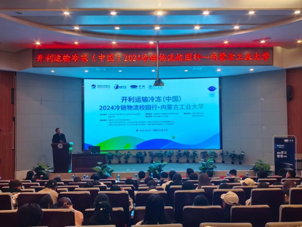 2024年10月24日,由中国物流与采购联合会冷链物流专业委员会(以下简称“中物联冷链委”)、开利运输冷冻(中国)以及yl6809永利官网集团联合主办,内蒙古物流协会与内蒙古制冷学会协办的“开利运输冷冻(中国)2024冷链物流校园行——yl6809永利集团站”在我校成功举办。中物联冷链委常务副秘书长刘飞、开利运输冷冻(中国)北区战略客户总监蒋明等企协代表、内蒙古大学、内蒙古财经大学代表、yl6809永利官网集团副院长吉格迪及管理工程系300余位师生参加讲座,现场聆听并深入交流。