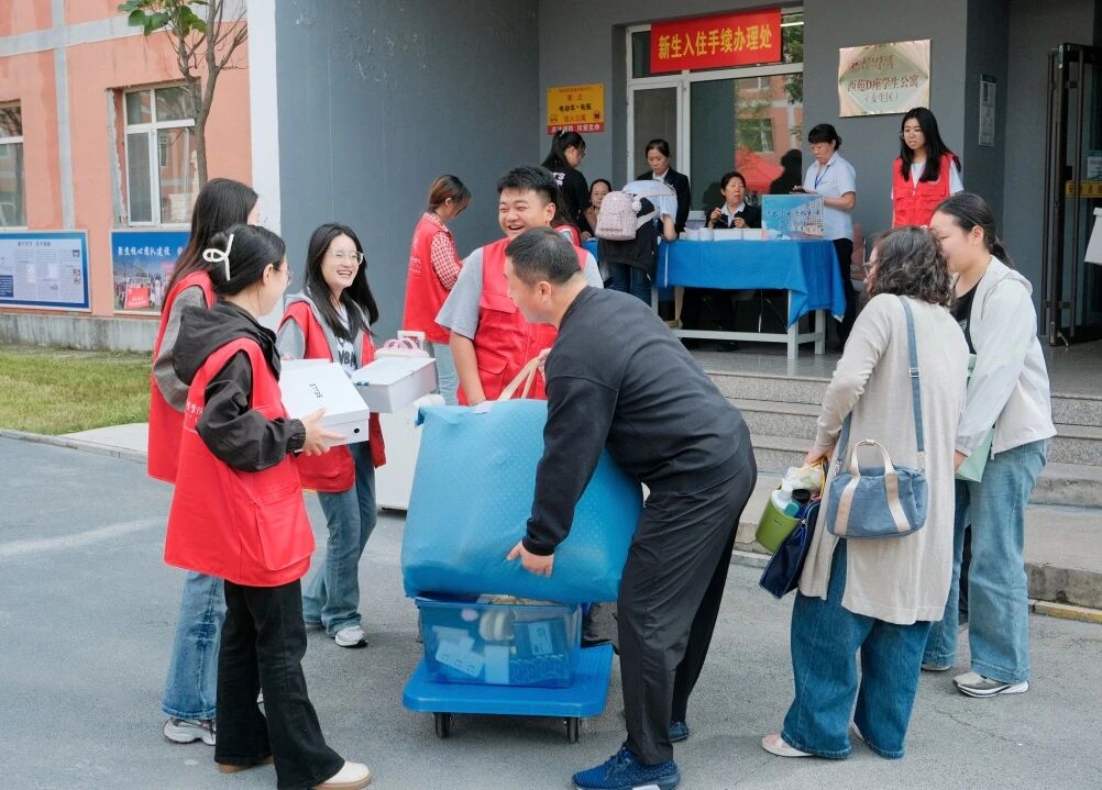 为了让迎新既有效率更有温度,学院早早就开启了“筹备模式”:报到点前,色彩明快的经管特色展板、现场的迎新服务专区一目了然,志愿者们化身“校园向导”“行李搬运工”“问题解答员”,从校门口接站到宿舍指引,一路小跑帮新生搬行李、聊专业、话校园,青春的身影穿梭在校园里,满是热闹与亲切。