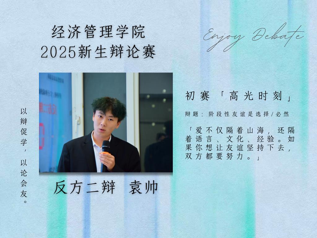 最佳辩手:反方二辩 袁帅