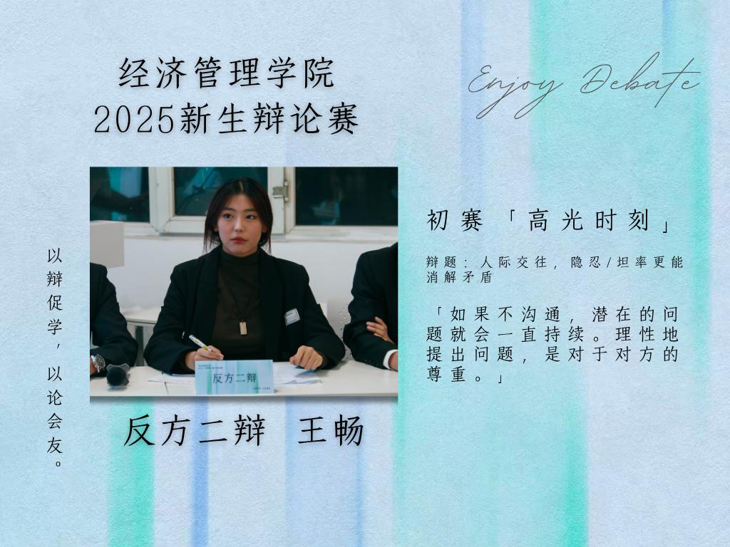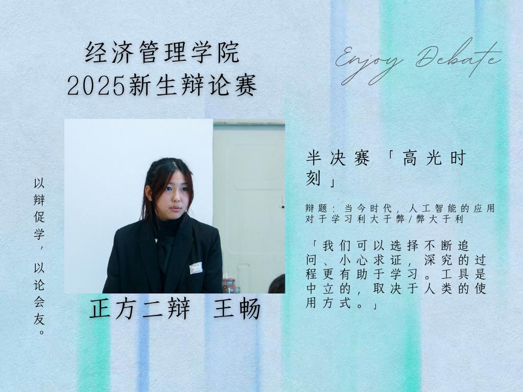 最佳辩手:正方二辩王畅