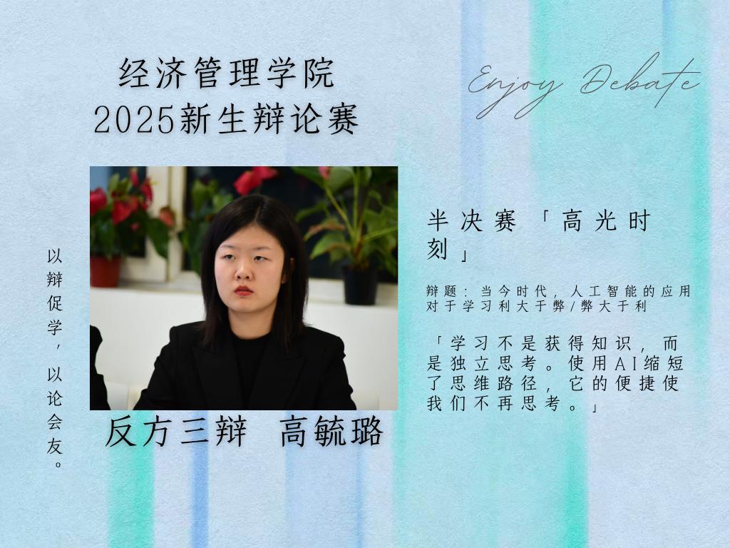 最佳辩手:反方三辩 高毓璐