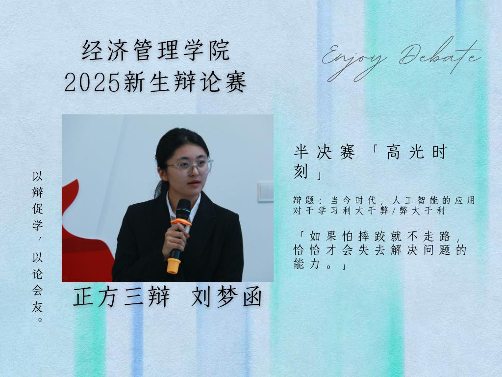最佳辩手:正方三辩刘梦函 反方三辩高毓璐