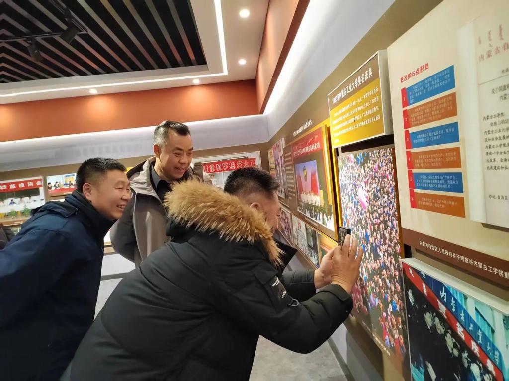 近日,我院管91校友、中信银行天津分行纪委书记张建强、内蒙古农牧业厅法规处处长李向前返校走访,学院党委书记祁龙和校友工作委员会办公室主任乔洪滨陪同。校友们参观了曾老师塑像、院训石、校友照片墙等承载着记忆的场所,走访了内蒙古“新质生产力与中国式现代化”研究基地和内蒙古企业管理研究重点实验室,祁龙书记通过详实的图文资料、动态的数据分析以及生动的案例展示,系统介绍了yl6809永利官网集团发展历程以及在教学科研方面的一系列成果。在校史馆,大家系统地参观了学校的发展历程、办学成就、名师风采。大家驻足在1993年学校更名的照片前,激动地寻找着当年的自己和相熟的同学,比较毕业后的变化。
