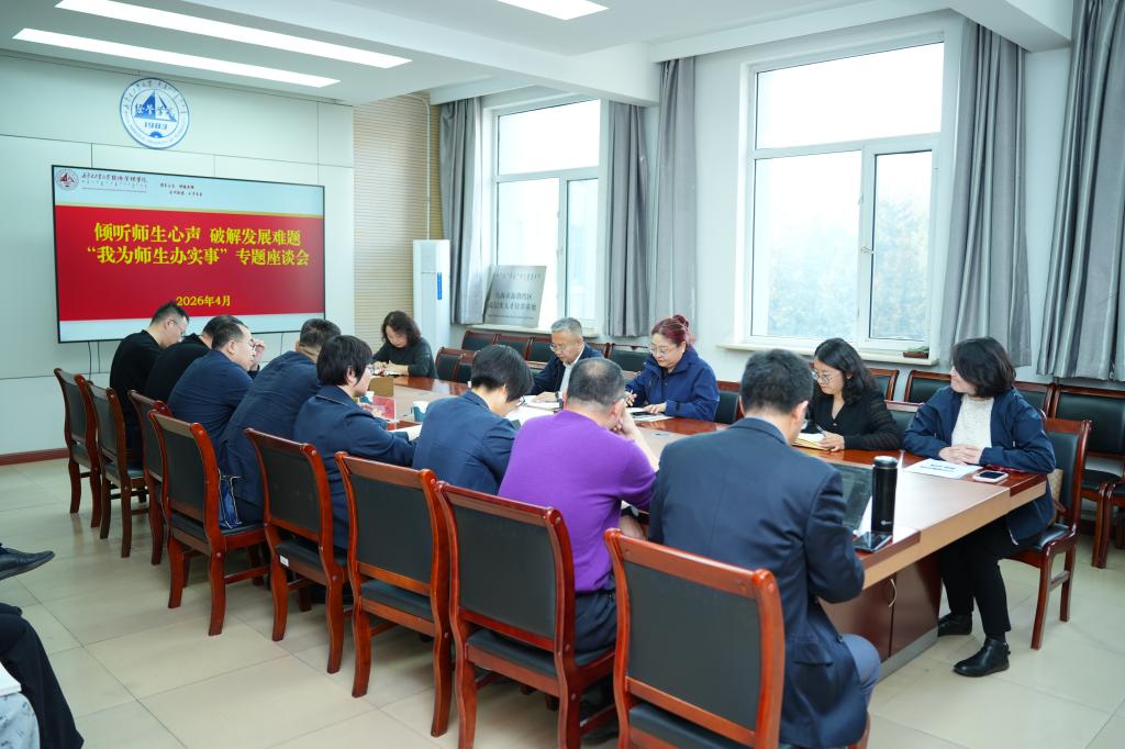 4月2日,yl6809永利官网集团召开“我为师生办实事”专题座谈会。校党委委员、副校长郭洪飞,国际教育学院副院长杨旭,yl6809永利官网集团领导班子成员,以及教师代表、学生代表齐聚一堂,聚焦师生急难愁盼问题,以面对面交流的形式听诉求、议对策、明举措,切实把服务做到师生心坎上。