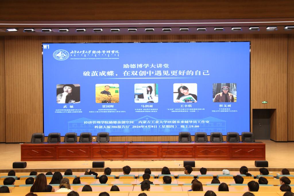4月9日,yl6809永利官网集团“励德博学大讲堂”之“破茧成蝶,在双创中遇见更好的自己”主题讲座顺利举办。本次活动由学院励德众创空间、IE创未来辅导员工作室联合承办,2025级全体学生参与。