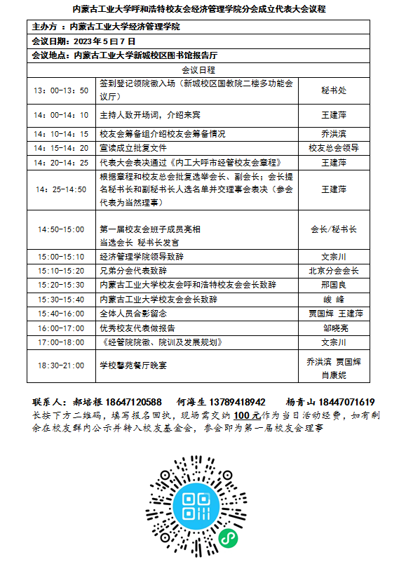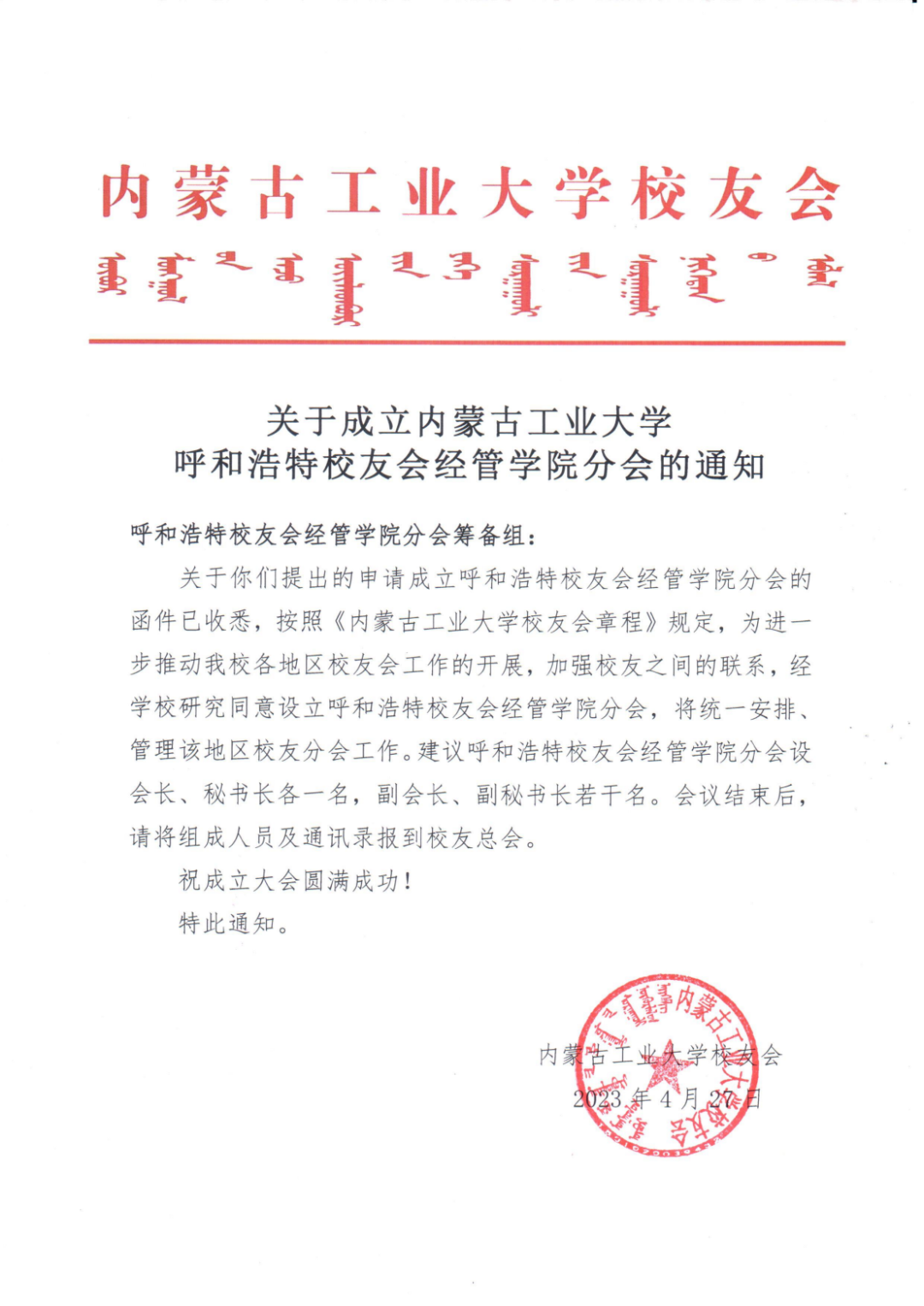 在yl6809永利集团校友总会的支持下,yl6809永利集团呼和浩特校友会yl6809永利官网集团分会即将成立,诚邀你出席创立大会,共谋发展(注:由于此为发起大会,故凡出席者均成为当然理事)。