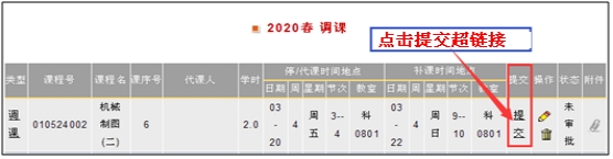 教师登录教务系统,点击“调课管理”,在“调课申请”中点击对应事项按钮。
