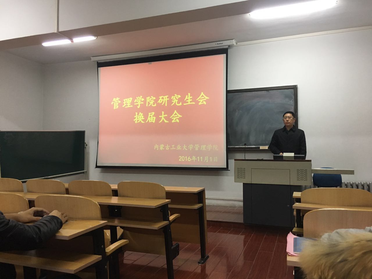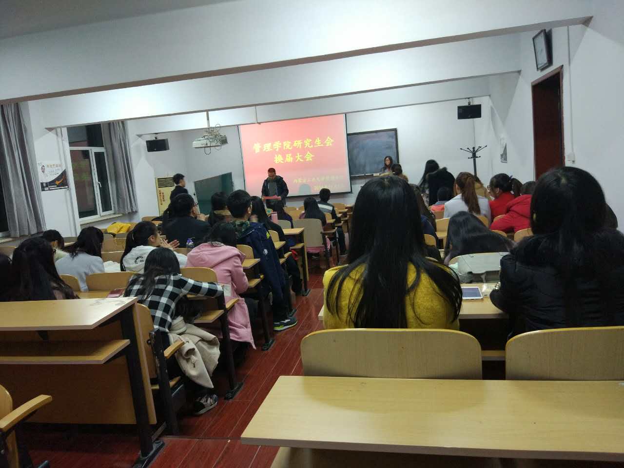 2016年11月1日晚6点50分,管理学院研究生会换届大会在管院210教室隆重举行。