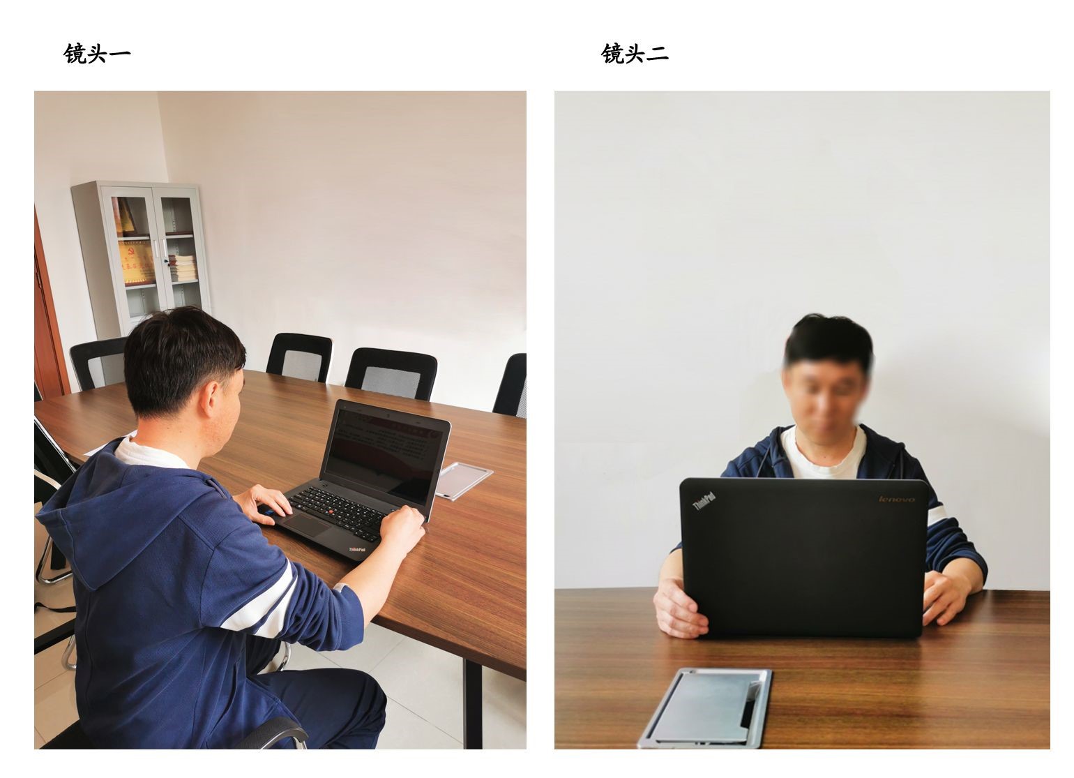 3、“双机位”要求。“第一机位”采集考生音、视频源(考生正前方);“第二机位”采集考生“第一机位”显示器的音、视频源(考生侧后方)。