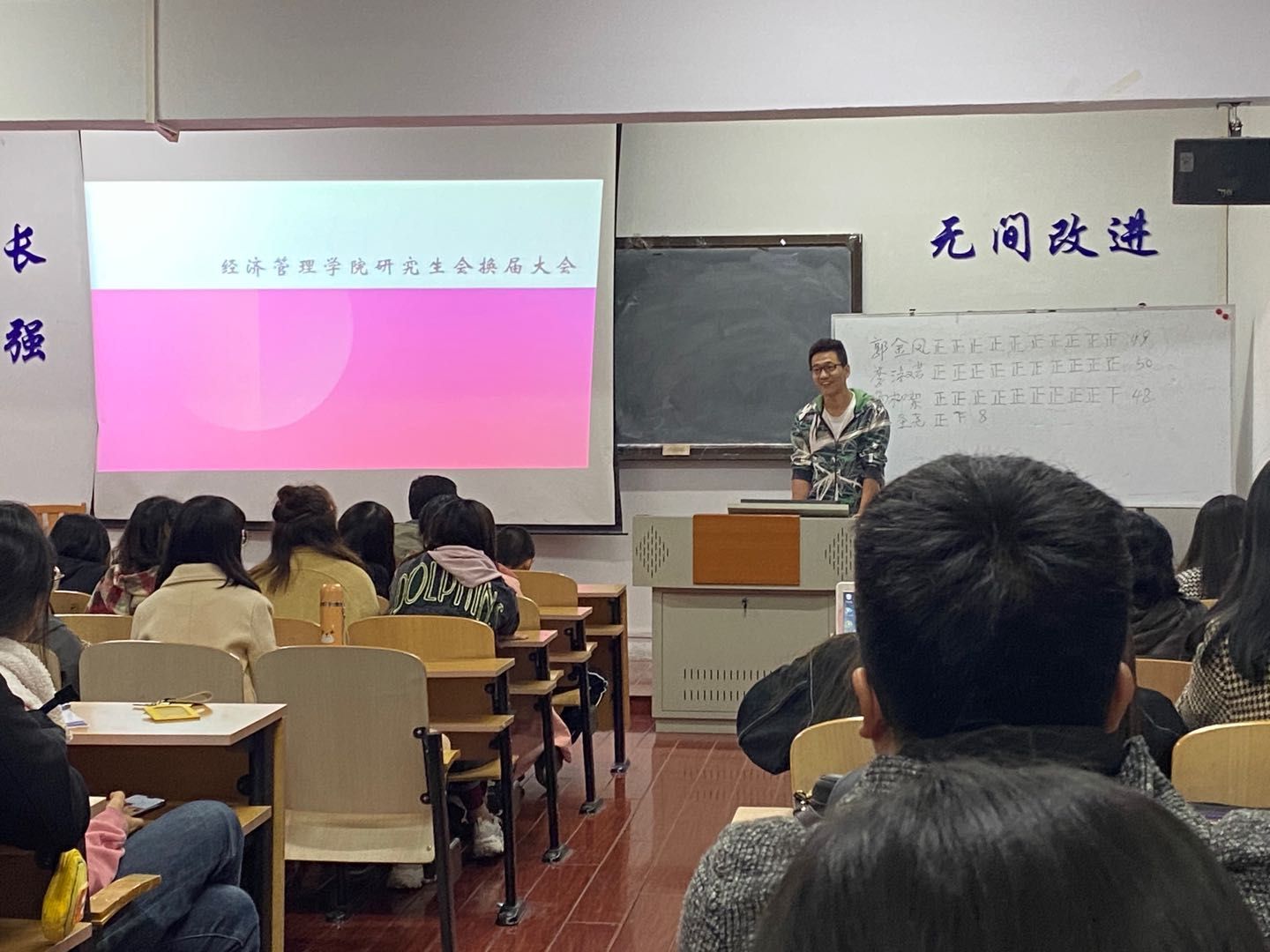 首先,侯剑老师宣布班级干部和研会干部人员,并对他们数日来的工作表示认可和赞赏,相信他们日后能够展开新的辉煌篇章。