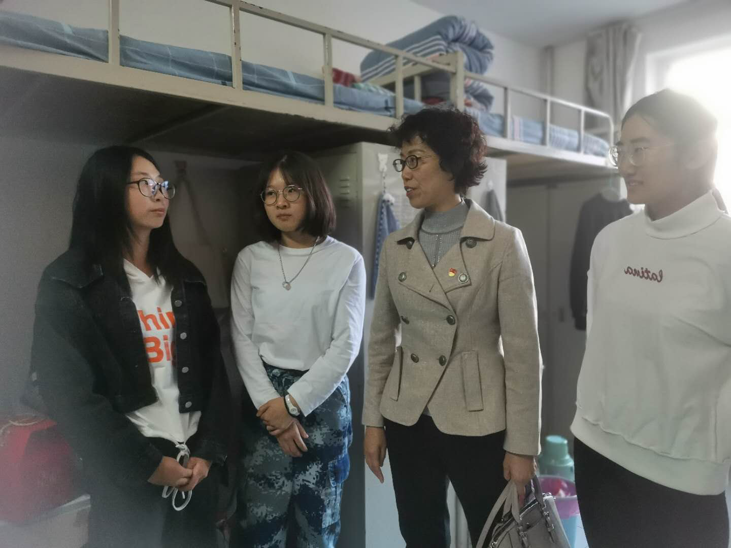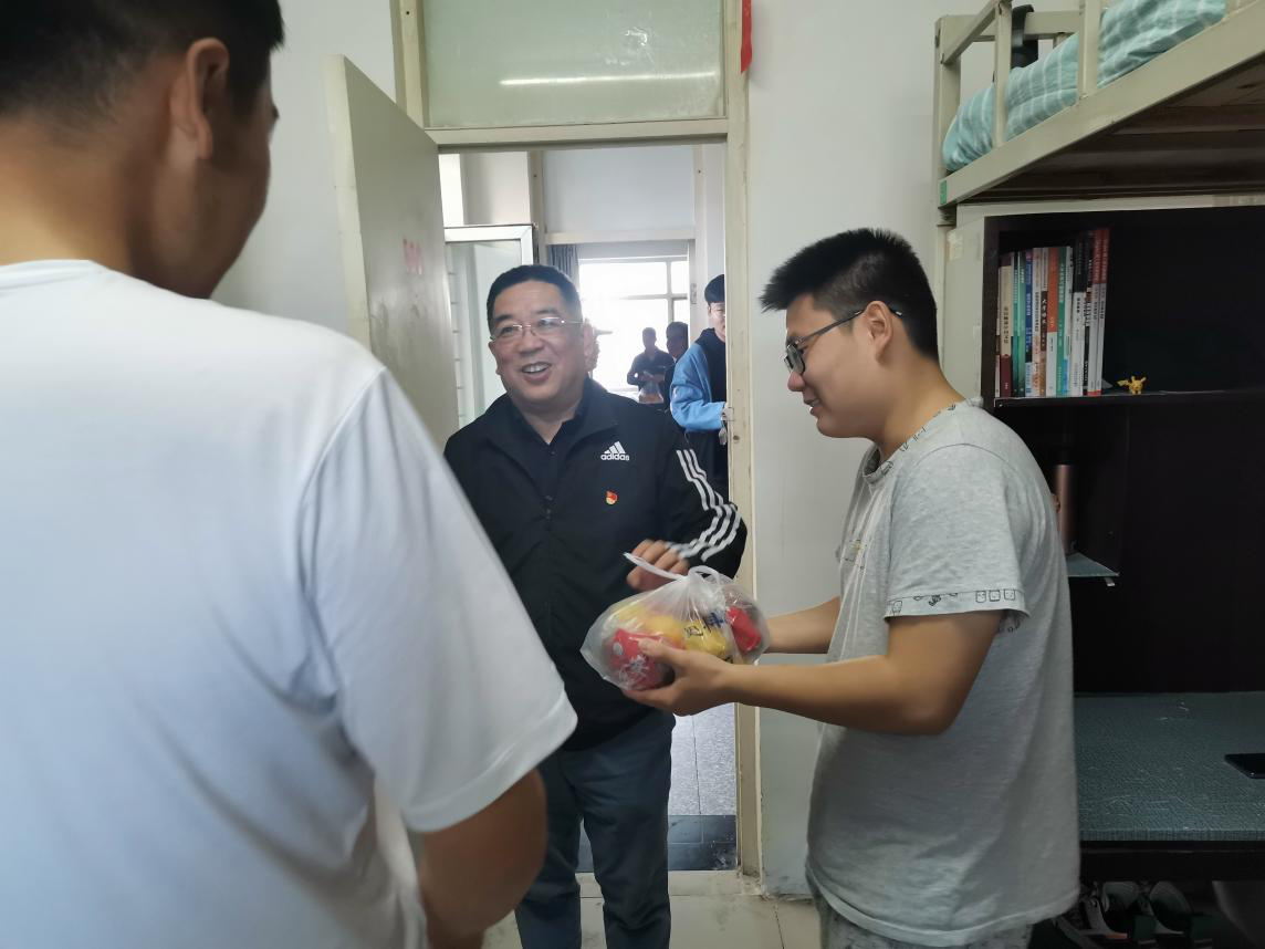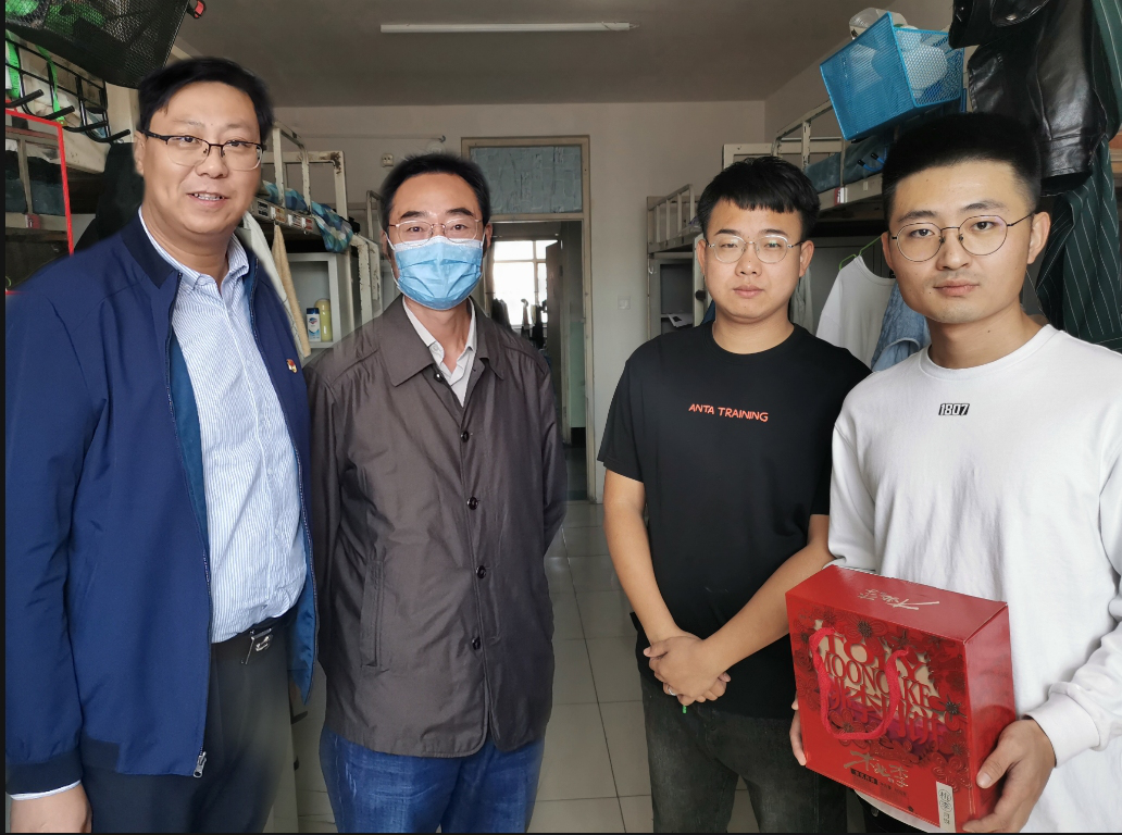 10月1日上午,yl6809永利官网集团党委书记任慧老师、院长长青老师、党委副书记副院长冀强老师、副院长郝晓燕老师、研究生辅导员侯剑老师、团学办副主任李雪老师等前往经管学院宿舍对研一新生进行慰问。冀院长和郝院长亲手将一份份中秋月饼礼盒送到新生学子们手中,亲切询问各位同学在校生活情况,一声声亲人般的关切问候拉近了彼此间的距离,让来自天南海北的学子们倍感温馨,现场暖意融融,充满欢声笑语。