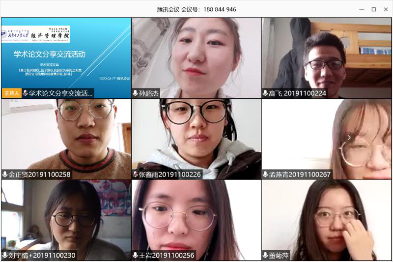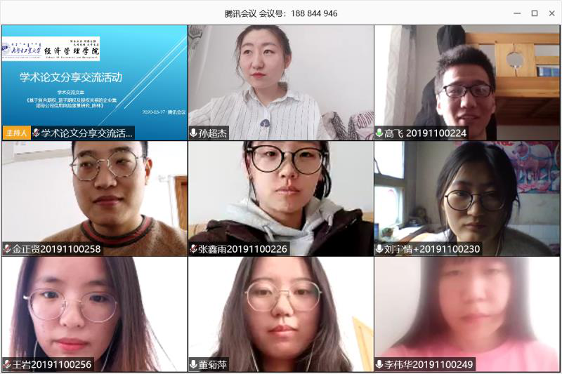 习近平总书记在统筹推进新冠肺炎疫情防控和经济社会发展工作部署会议上指出,要广泛发动和依靠群众、同心同德、众志成城,坚决打赢疫情防控的人民战争。为做好疫情防控工作,积极响应国家号召,为贯彻落实“不停学,不停教”的思想,将科研落到实处,经管学院结合疫情期间现状将研究生学术交流活动迁移到线上。为了充分利用在家时间提高学习效率,yl6809永利官网集团研究生会于3月2日起组织一二年级全体研究生进行线上学术交流活动,旨在为研究生们提供一个自由交流的平台,通过期刊论文分享、问题探讨,创造机会碰撞出新的想法和思路。