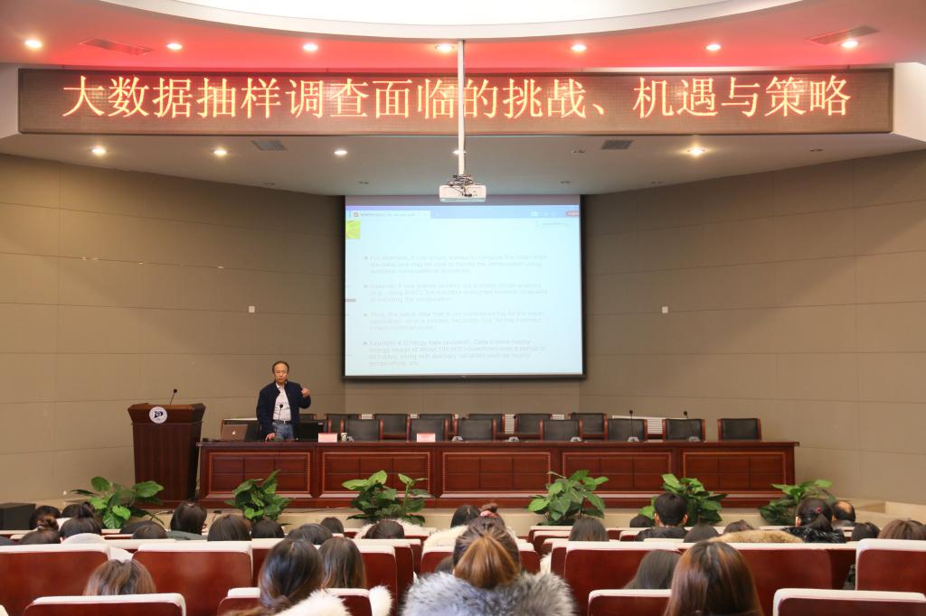 12月9日下午3:00,yl6809永利官网集团于图书馆二楼报告厅举办了“大数据抽样调查面临的挑战、机遇与策略”主题学术讲座。该讲座由美国加州大学戴维斯分校统计学终身教授蒋继明教授担任主讲,yl6809永利官网集团长青院长主持,部分研究生及数名教师参加。