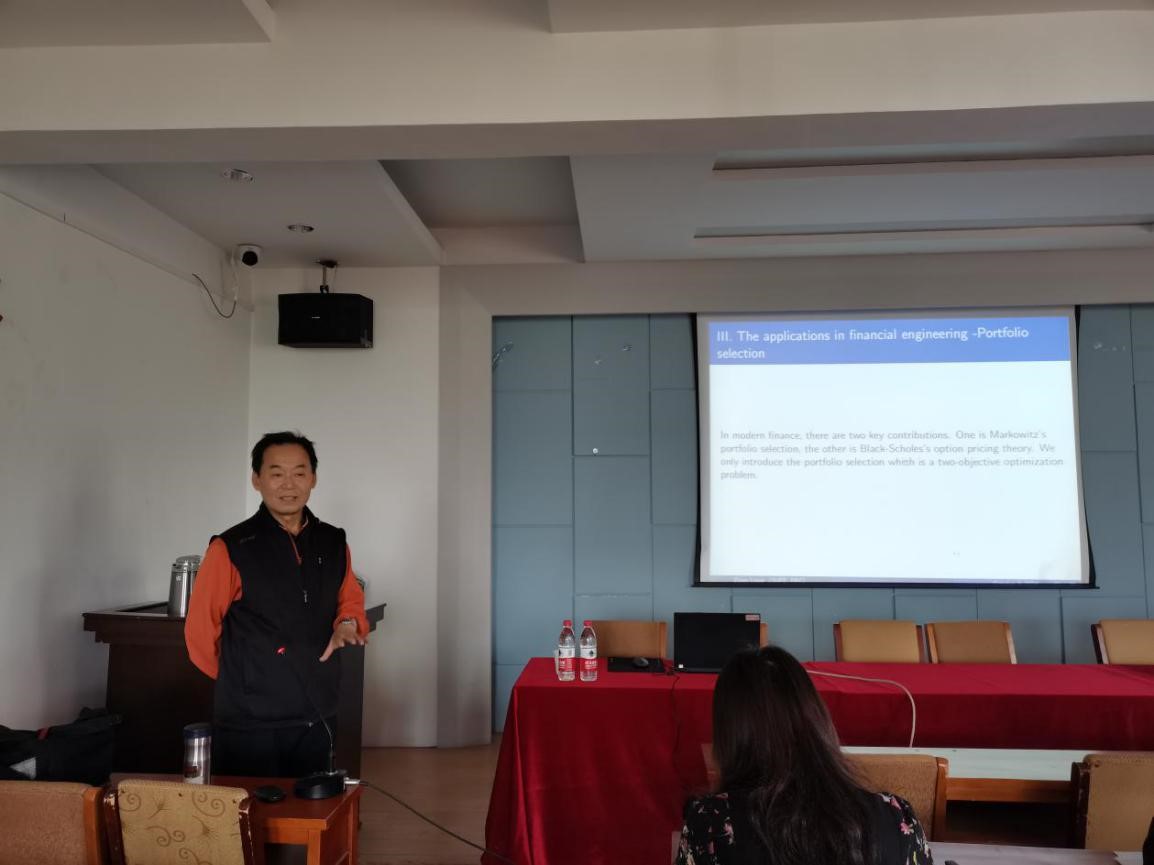 最后,梁教授为大家着重介绍了多目标规划在金融工程中的应用。指出其在现代金融领域中有两个主要贡献,即马克维茨的投资组合选择和布莱克-斯科尔斯的期权定价理论。随后主要介绍了后者的模型理论,并提及需要考虑投资风险等因素对模型的影响。梁教授强调只有好的数学基础,才能做出好的数学模型,才能更好地解决经济管理中的问题。愿同学们经过本次讲座,能够更好的将数学模型应用于经济管理问题中,将理论联系实际,为以后的学术研究奠定良好的基础。