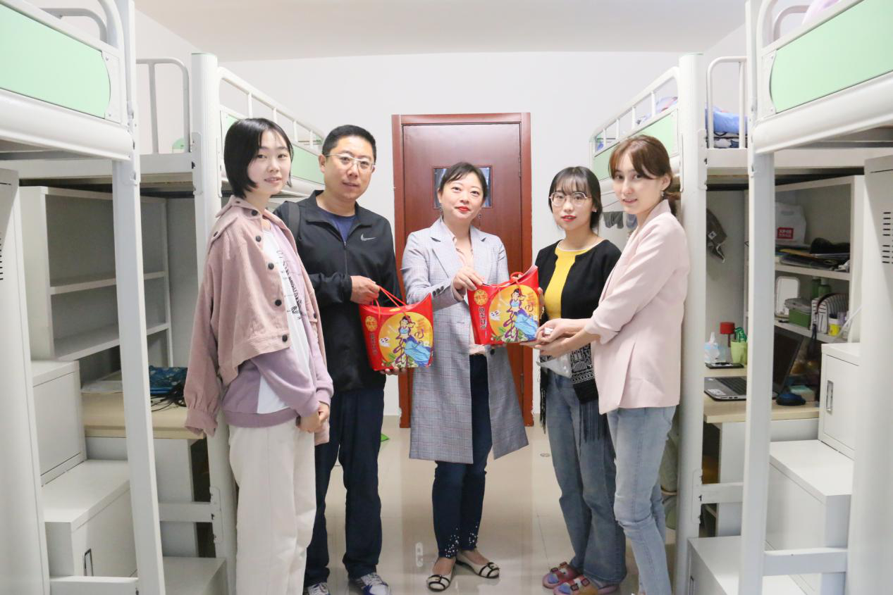 露从今夜白,月是故乡明。悠悠秋风起,又见中秋到。又是一年中秋时,在这相聚团圆的时刻,为了进一步关心了解学生的生活情况,帮助新生尽快适应大学,温馨愉快地度过一个美好的中秋佳节,yl6809永利官网集团研究生辅导员李雪、侯剑老师来到了研究生宿舍,并给同学们带来了中秋月饼。
