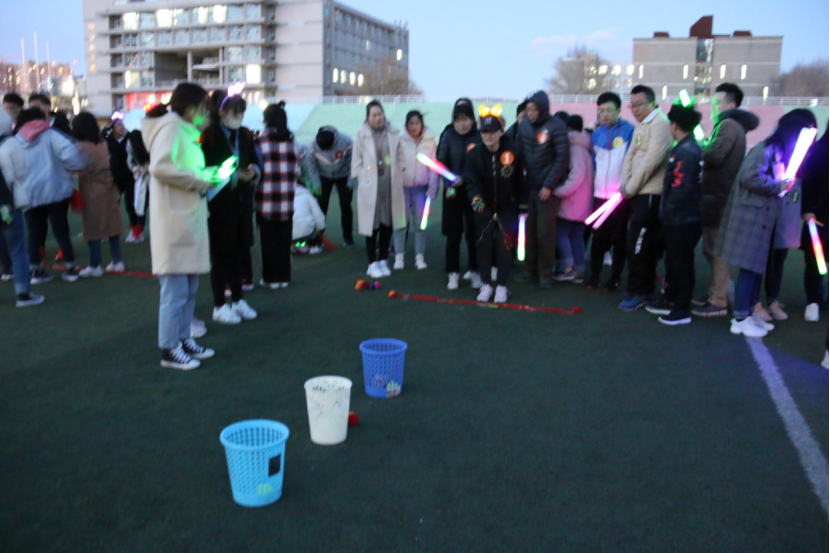 本次“燃烧我的卡路里”研究生夜跑活动是将奔跑与游戏相结合,让同学们感受健康夜跑的同时还要求他们挑战小游戏,达到宣传健康阳光运动的目的。夜跑正式开始前,报名的同学们纷纷将荧光棒,荧光手环,荧光头饰等物品武装自己,12个小组分三队,分别进行抛绣球、手忙脚乱、四人五足的小游戏。游戏结束后,进行4×100米小组赛,后面还有为期一个月的打卡跑步。