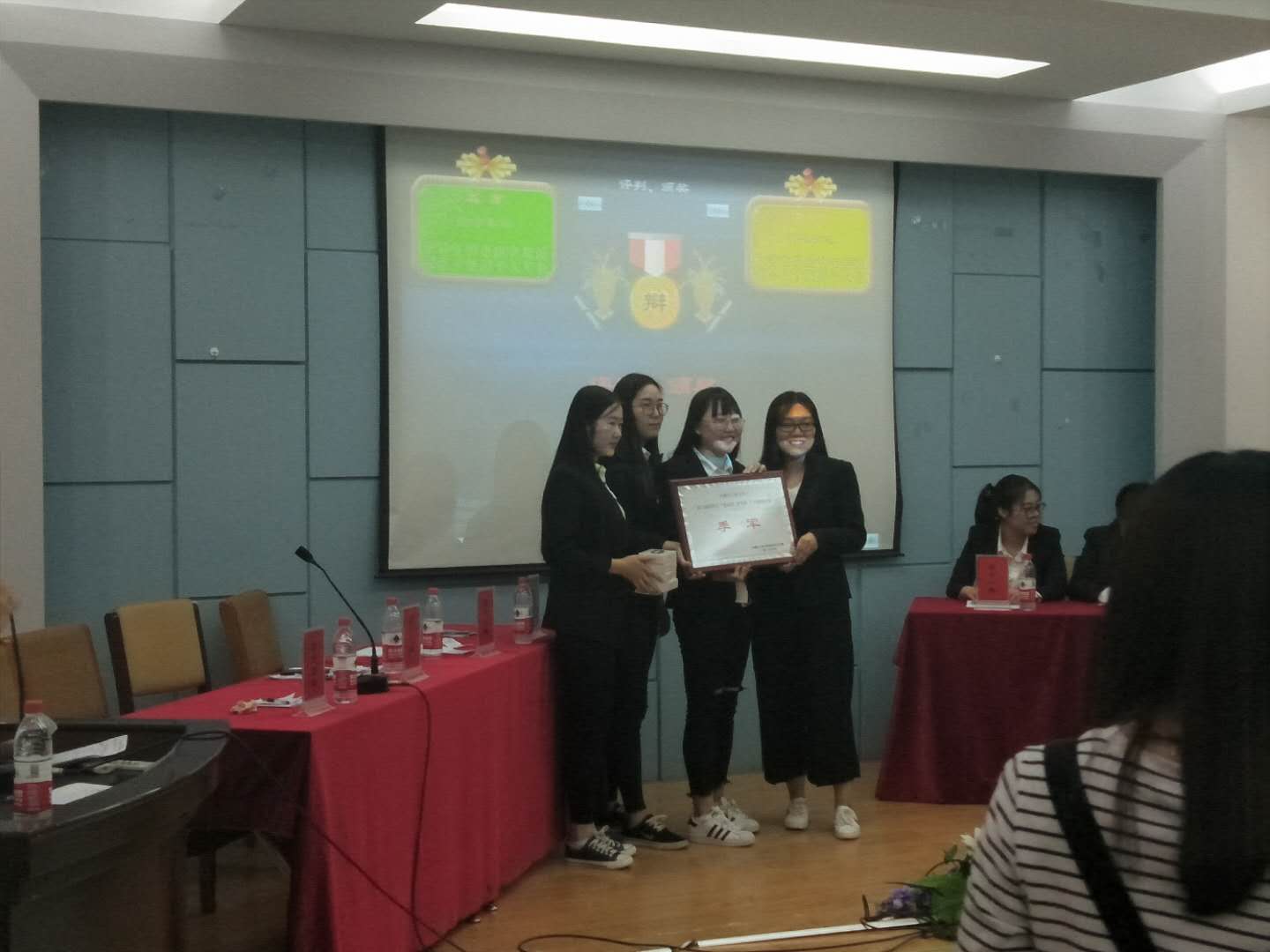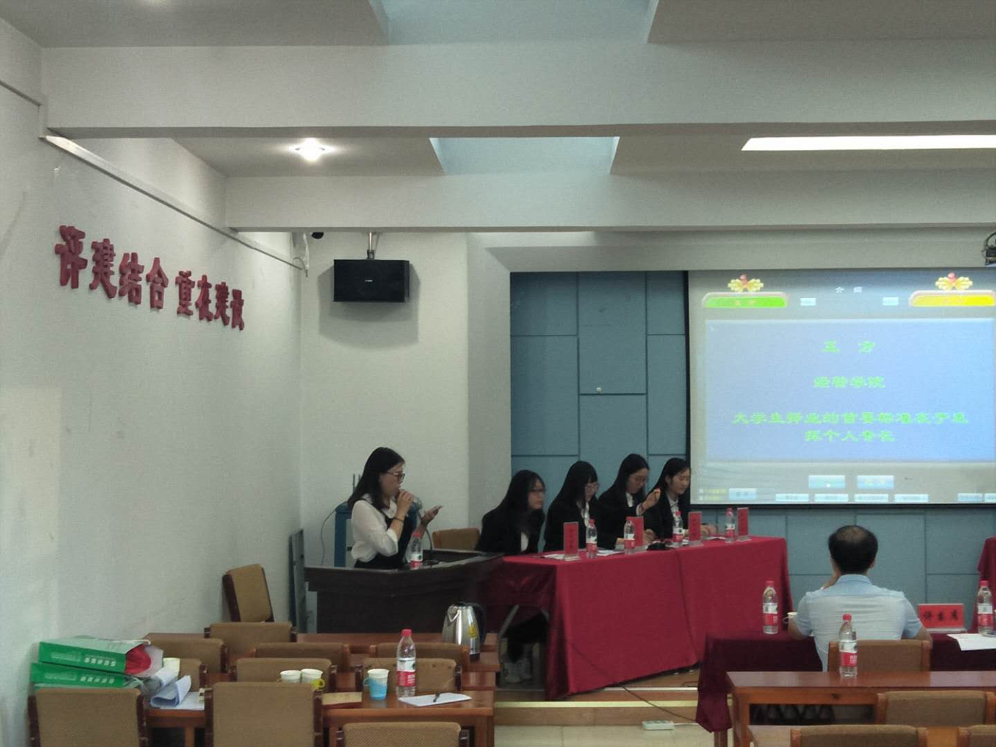 由我院雷婧、张晓燕、孙宁、侯雪茹同学组成的经济管理学院代表队对决机械学院代表队。针对“大学生择业的首要标准是否在于发挥个人专长”这一辩题,我们作为正方就“大学生择业的首要标准在于发挥个人专长”这一观点,与机械学院展开精彩辩论。
