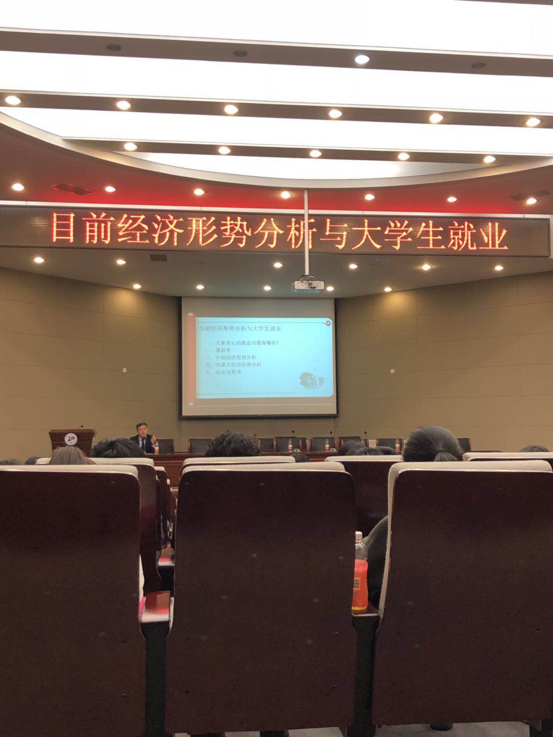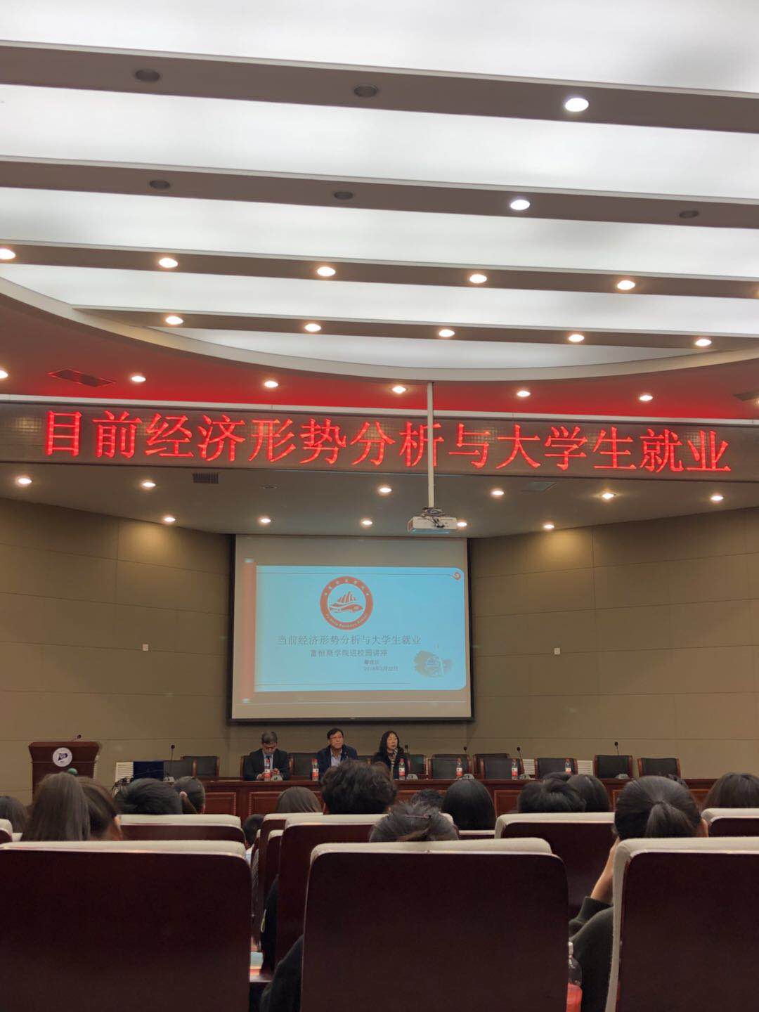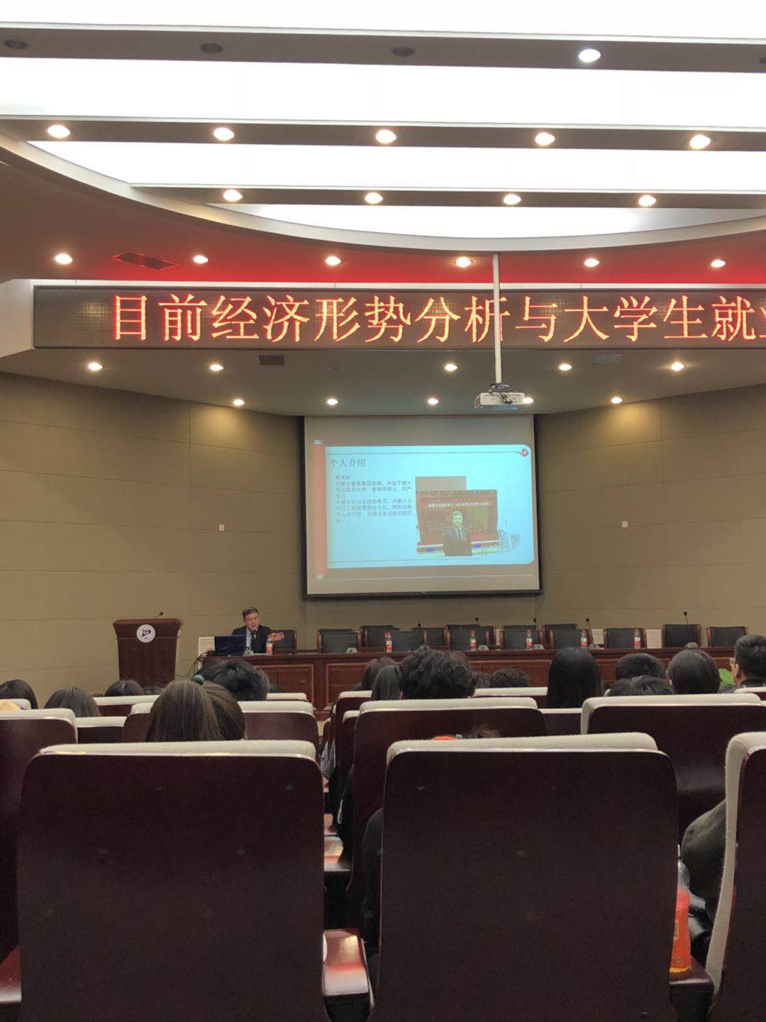 2018年3月22日晚七点,yl6809永利官网集团在新城校区图书馆二楼报告厅举办了主题为“当前经济形势分析与大学生就业”的讲座,该讲座由内蒙古富恒集团总裁,内蒙古富恒商学院院长郗虎庆先生主讲,yl6809永利官网集团副院长主持,本次讲座3月20日晚已在金川校区进行,同学们反响比较不错,因此又在新城校区加办了一场。
