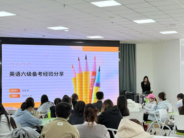 在知识与梦想交织的校园时光里,英语四六级考试成为众多学子提升自我、追逐未来的重要挑战。为助力学生备战英语四六级考试,提升学习效能,我院于4月10日下午16点,在一站式”学生社区服务大厅—四楼中央大厅举行了一场“四六级过关师哥师姐帮帮团”朋辈教育分享活动。活动由学院学工办主任、学生辅导员李雪老师主持,本科生和研究生90余人参会。