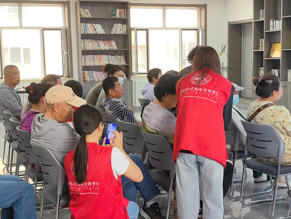 宣讲结束后,研究生会志愿者们立即化身“反诈小助手”,耐心地为现场居民提供一对一服务。研究生会志愿者们发挥专业所长,从金融风险识别、消费者权益保护、营销话术分析等角度,帮助居民理解诈骗背后的经济逻辑和陷阱设计,并实名注册“国家反诈中心”APP,现场演示来电预警、风险查询、骗局曝光等核心功能的使用方法。“姑娘,这个APP真方便,下次我就不用再担心接到奇怪的电话了!”一位刚在志愿者帮助下完成安装设置的奶奶欣慰地说。志愿者们还协助老人关注官方反诈公众号,发放精心印制的防骗手册,全方位提升老人的识诈“免疫力”。