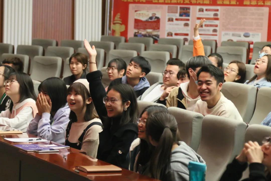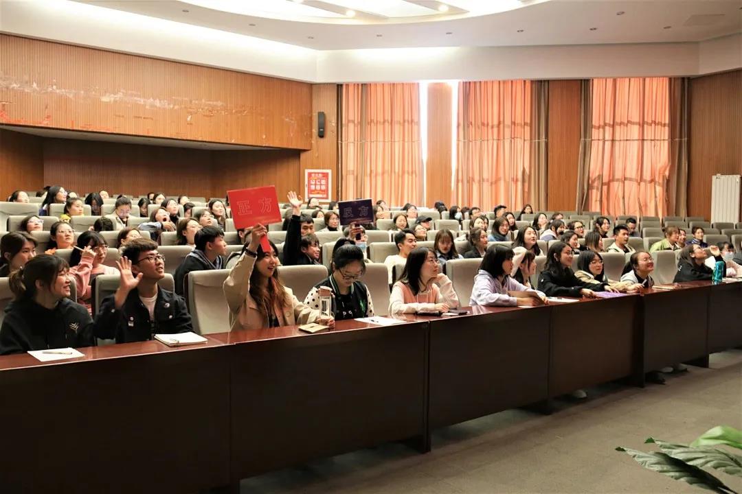党史知识竞赛环节分为团队必答题、风险题和观众抢答题两部分,竞赛题型含文字题、图片题、音频题三类。在作答的各个环节,无论是金融、资环、国贸专业参赛各团队,还是现场各位观众均积极作答,争先抢答,气氛非常活跃。经过激烈的比拼,金融18代表队获得一等奖、资环18、国贸18 、金融19三个代表队获得二等奖,资环19代表队获得三等奖,五名观众获得参与奖。