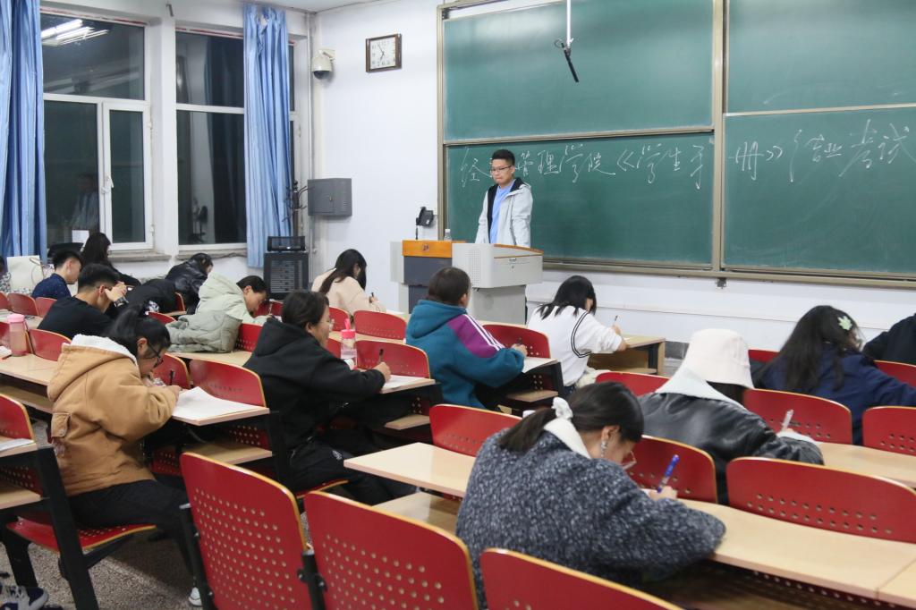 本次考试采取闭卷形式,内容涉及大学生日常管理规定、宿舍管理规定、安全管理、纪律处分实施办法、综合素质测评办法、请销假办法、奖助学金评定细则、转专业管理办法、本科生推荐免试攻读硕士研究生工作管理办法等方面。考试题型共有单选、多选、判断、填空、简答、论述六大类,全面考察同学们对我校学生工作各项管理规定的认知程度。开考之前,监考人员宣布考试注意事项,考试开始后,全体同学自觉遵守考场纪律、认真作答、全场肃静、整体考风良好。考试结束后同学们纷纷表示,通过本次考试,不仅使自己加深了对学校的各项规章制度的了解,增强了纪律规范意识,同时也让自己对大学生活有了新的规划。