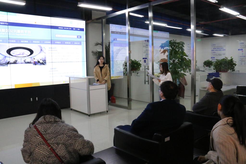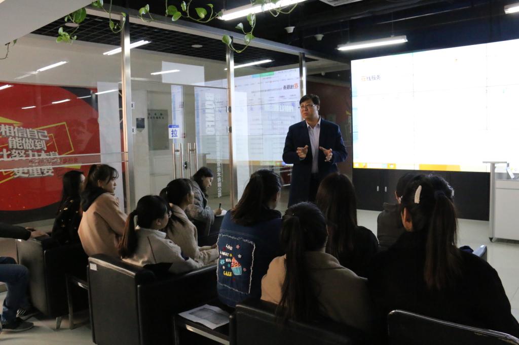 3月22日上午,调研组到金桥开发区电子商务园,走访了我院学生实习的北青信息技术有限公司、磨一米有限公司、大白鲨网络服务有限公司及内蒙古塞北粮仓农业发展有限公司,详细了解了我院2015级电子商务专业及信息管理与信息系统专业学生的顶岗实习情况,在走访期间老师们与相关企业的负责深入展开交流,积极了解学生的实习状况。信管15班高旭彤作为学生代表对为期半个月的实习情况向学院老师进行总结汇报,在汇报的过程中表示此次的实习让他们真正的将课堂所学习的知识融入到工作中,公司领导手把手的教学让其能力在短时间内有了很大的提升,也为之后的工作奠定了基础。