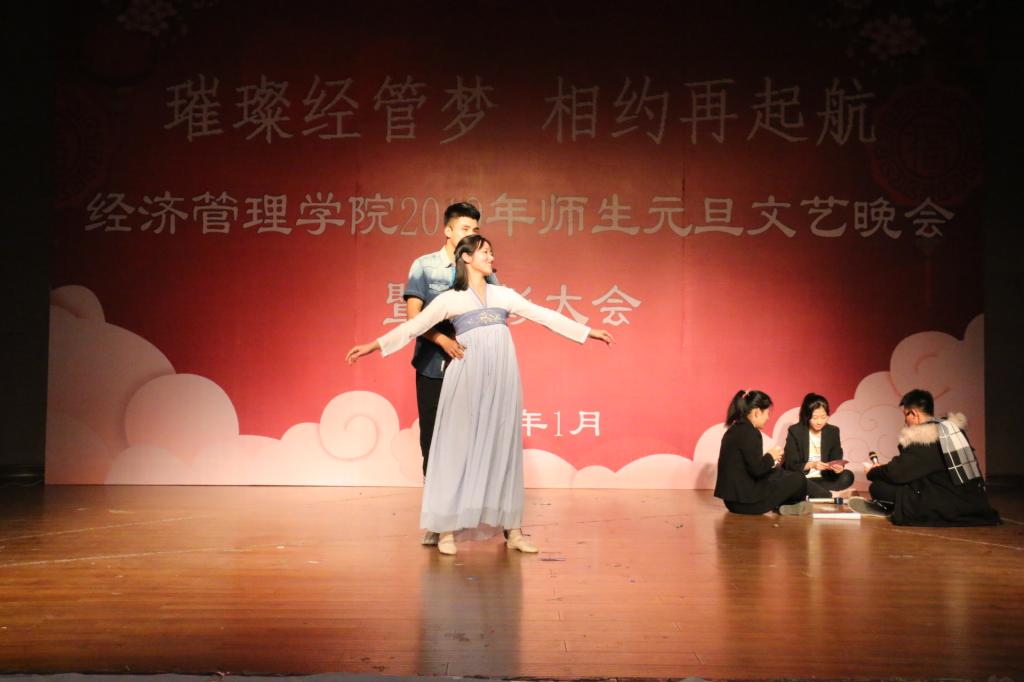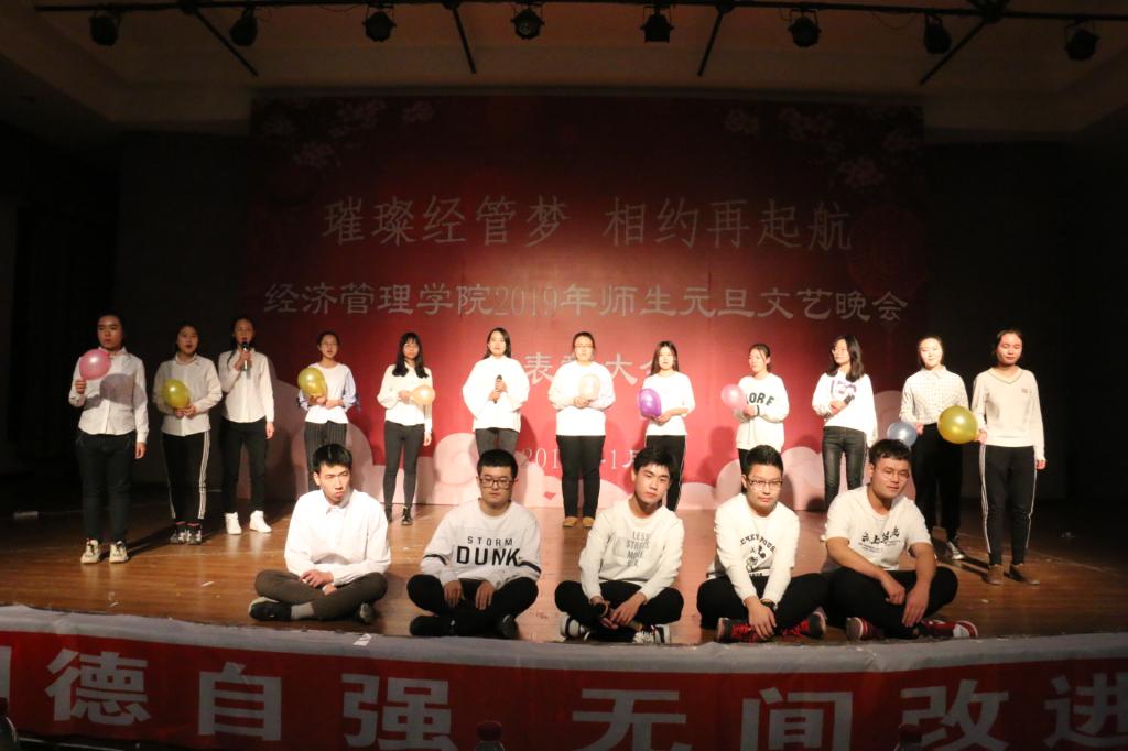 经管师生同欢庆,齐心协力谱新篇。1月9日,yl6809永利官网集团于新城校区学生活动中心举办2019“璀璨经管梦 相约再起航”师生元旦文艺晚会暨表彰大会。学院党委书记任慧,党委副书记、副院长冀强,团学办公室各位老师出席,200余名学生参加。