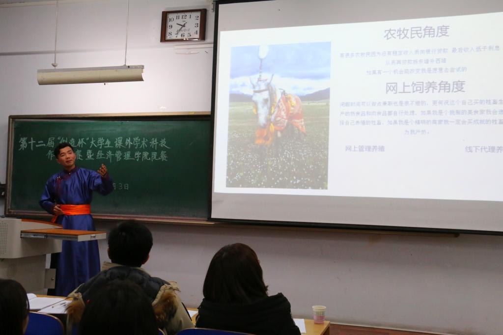 本次参赛作品分为自然科学类学术论文,科技发明制作,哲学社会科学类社会调查报告和学术论文三类,涉及生态环境,电子竞技,高等教育,城市治理等多个领域。各参赛团队就项目背景及研究意义,设计方案,先进行创新性,实际应用价值和现实意义等方面进行答辩。各位评委老师根据项目答辩、进展、落地等情况提出具有建设性的改进意见和建议。其中,“自热鞋”、“一种模块化的自定义校园团购系统”、“一种新型地下排水系统的设计与优化”,“基于贸易互补的中俄优势产业链协同发展研究”,“内蒙古农村牧区金融知识普及现状调查研究—以阿荣旗为例”,“智慧城市视角下呼和浩特市生活垃圾治理政府行为研究”等多个项目都体现了我院青年学生所具备的创新意识和能力,获得了评委老师的一致好评。