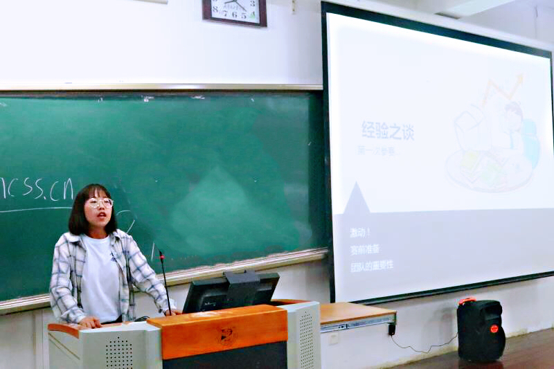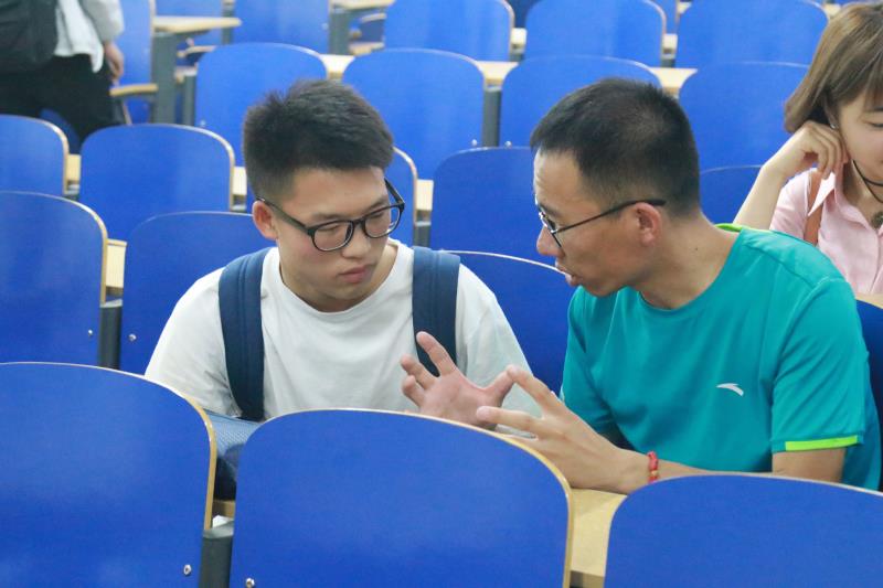 张栋结合自己的比赛经历,向大家介绍了参赛项目创意来源和如何将项目落地,和同学们分享了比赛答辩的实时录像。他建议参加比赛的同学跨专业组队,合理分工,充分发挥每个人的优势让队伍更优秀;白秀山就“互联网+”比赛商业计划书的书写格式进行了详细讲解;赵慧、郭晓阳同大家分享了路演答辩技巧以及答辩ppt的制作,并鼓励大家要坚持到底。比赛的过程中必然会遇到困难,但坚持不懈的努力一定能够克服。讲座结束后,部分同学就参赛中遇到的问题,项目方向的选择等和老师、主讲同学等进行探讨。