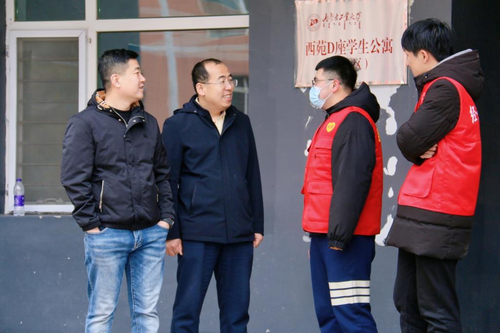 学院领导和老师与同学们亲切交谈,了解学生的学习、生活、思想动态,希望同学们坚定不移听党话、跟党走,怀抱梦想、脚踏实地,以良好的精神状态和全新的精神面貌迎接新的学期。