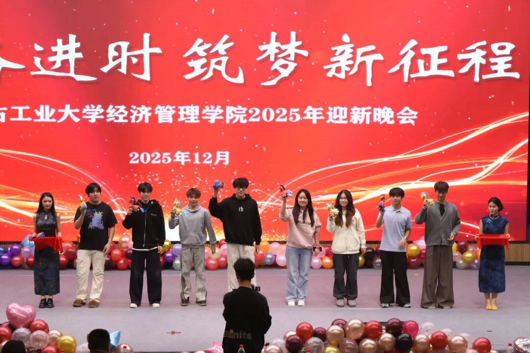 全场摇一摇抽奖环节,将晚会气氛推向新的高潮。数位幸运学子脱颖而出,赢得了承载学院心意的专属奖品“经管奋进之马”。