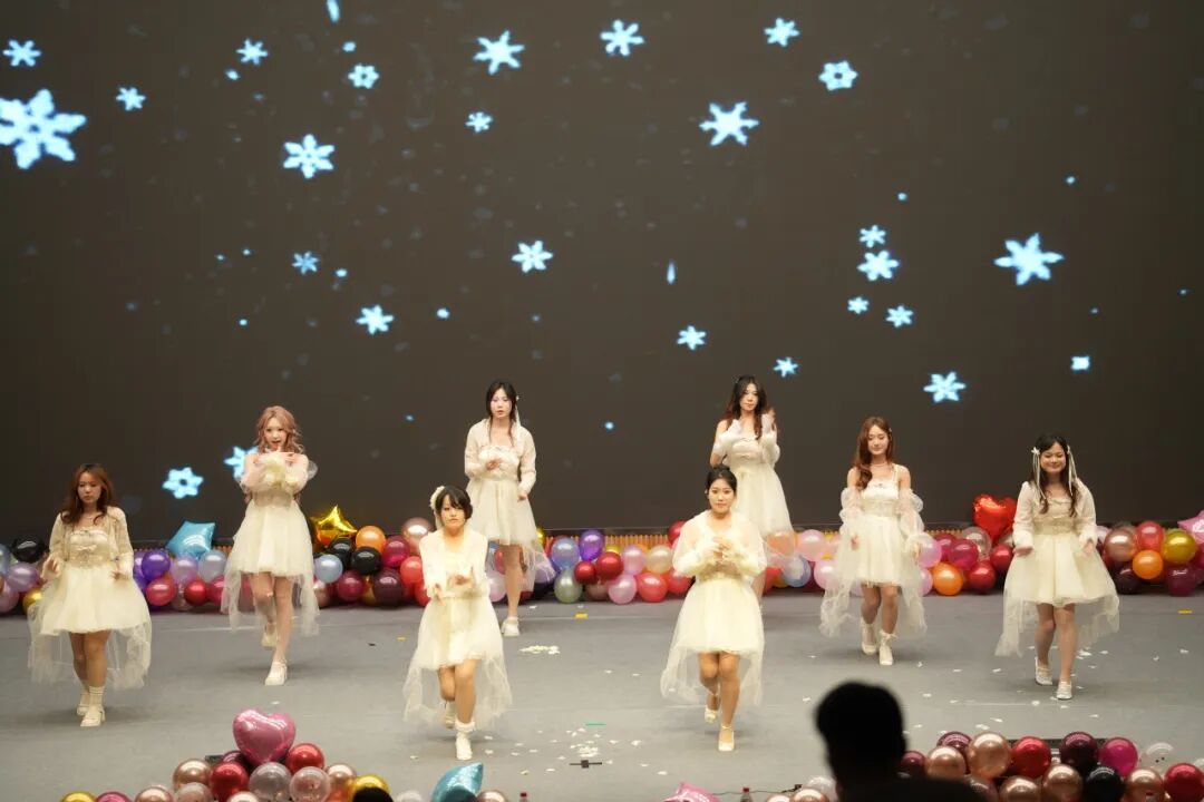 舞台瞬间被少女们的甜美笑容点燃。整齐划一的刀群舞步,搭配富有冲击力的流行节奏,完美展现了青春的自信风暴。表演者们用精准的节奏控制和极具张力的舞台表现,生动诠释了歌曲中果敢选择、自信面对的内核,用纯粹的热情与活力引爆全场。
