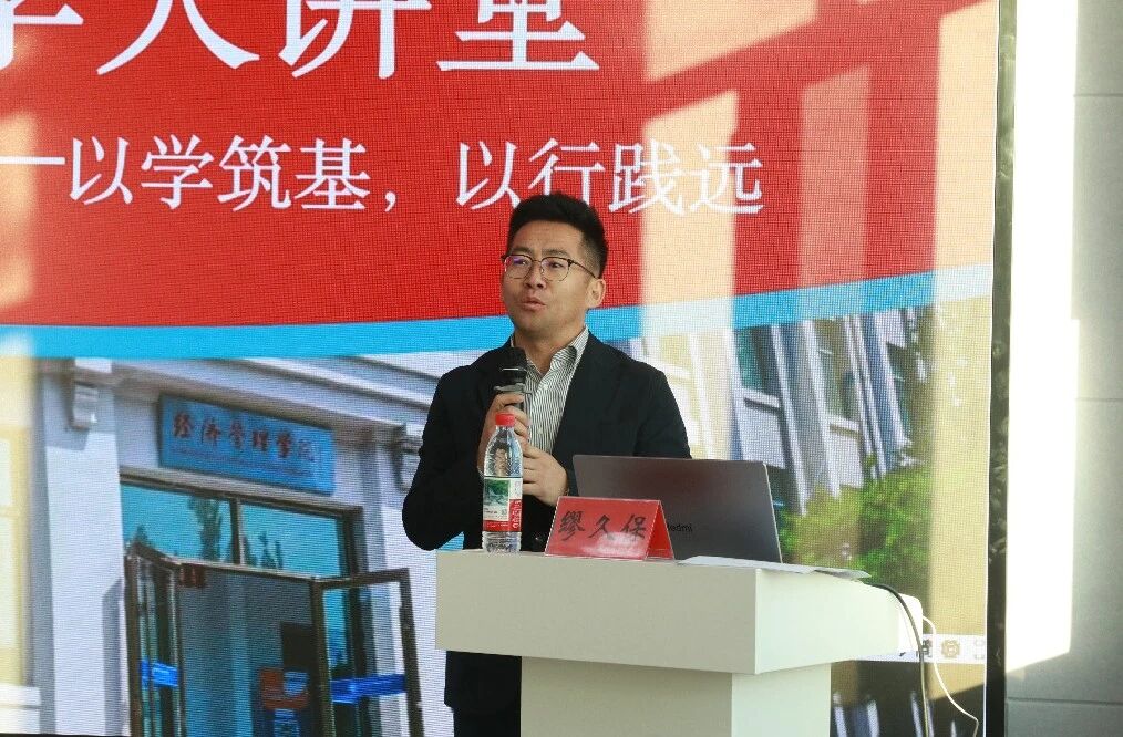 缪久保总经理分享了自己求学、创业和深耕职业之路。他坦言,学习是贯穿人生的持久修行——“专科解决生存,本科拓宽边界,研究生实现突破”。他鼓励同学们不畏起点、不惧迟迈,持续学习是应对未来不确定性的最坚实依靠,“干一行爱一行”的责任心和持续学习则是突破职业瓶颈的关键。在创业探索方面,缪久保分享了自己三次创业的感悟:从初次创业因缺乏经验受挫,到依托平台实现价值,再到重视“优秀领导+优秀团队+共同目标”的模式。他勉励同学:“挫折可能暗藏机遇,深耕比短暂冲刺更重要。”