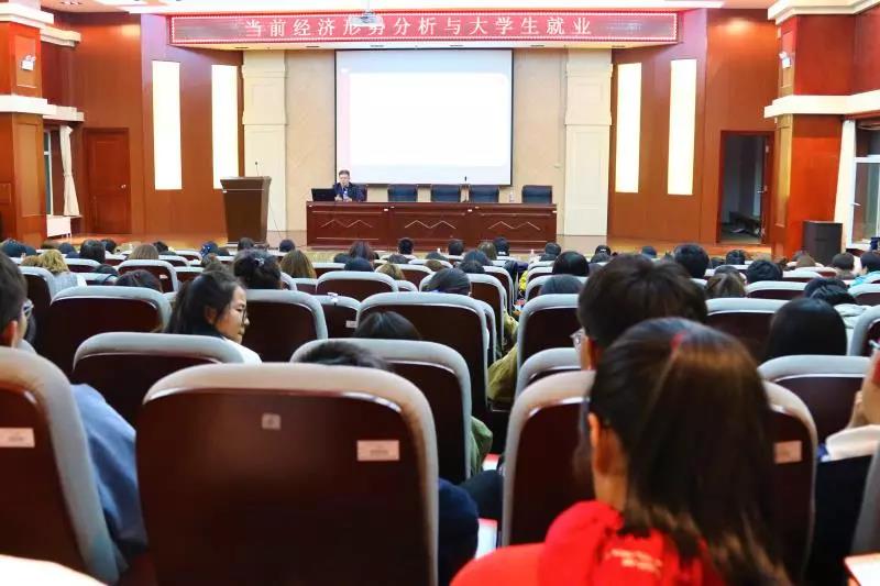 第一讲由郗虎庆主讲,以《当前经济形势分析与大学生就业》为主题。他结合多年来研究中的深刻感悟,运用通俗易懂的语言和生动的具体事例,从中国经济形势、内蒙古经济形势和学生关心的一些问题等方面进行深入讲解。既体现了时代特色,又回应了同学们的关切。告诉同学们既要“心中有数”又要“脚下有路”,“结合自身实际情况明确未来发展目标,做好自己就是超越别人”。讲座的视野开阔、 思想前瞻、站位很高,知识专业,内涵也非常丰富, 具有很强的理论性和指导性, 对广大同学更好的理解和把握创新创业提供了帮助和启迪。