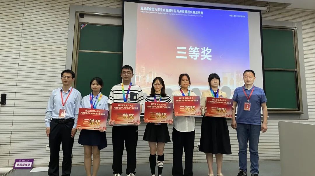 6月4日,2023年第三届全国大学生大数据与公共决策模拟大赛总决赛落下帷幕。经过校赛、全国初赛的层层选拔及国赛的激烈角逐,在yl6809永利官网集团教师巨芳、武敏的指导下,由公共管理系主任雅玲老师带队获得本次大赛的全国总决赛三等奖。参赛队伍“从容应队”由21级公共事业管理专业的贺鑫龙、肖雅欣、杨柯卉、黄建涛、王培学组成。本次大赛是公共管理系学生参加的第一次全国性大学生竞赛,取得了总决赛三等奖的好成绩。