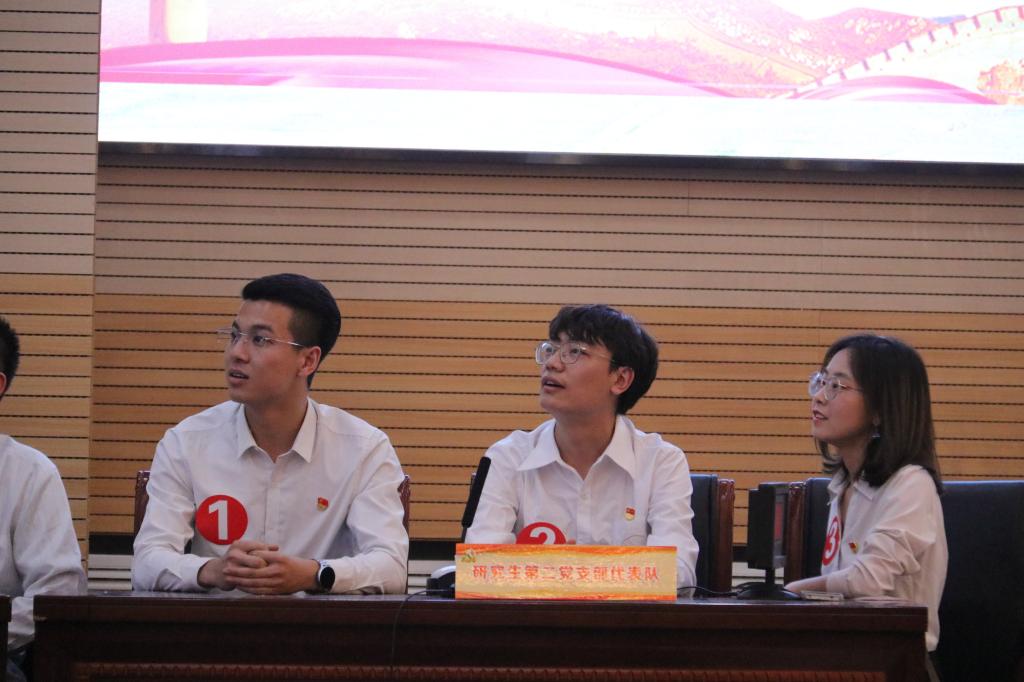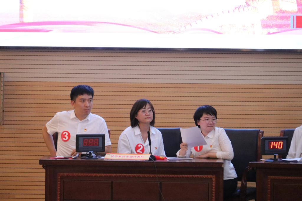 经过初赛选拔,经济系党支部、管工与公共学生联合党支部等6支代表队进入决赛。决赛分为“单兵突击”“团队作战”“抢占高地”“背水一战”“狭路相逢”五个环节,通过必答、抢答、计时、风险等多种题型,结合音频、图片等多种形式,考察选手对党史知识的掌握和理解程度。选手们不畏挑战的精神、沉着冷静的赛风以及对党史知识的精准把握,赢得了观众的阵阵掌声。