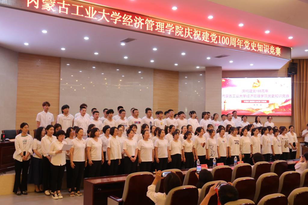 竞赛开始前,师生合唱团演唱建党百年主题曲《少年》,学院党委书记任慧带领全体党员重温入党誓词。