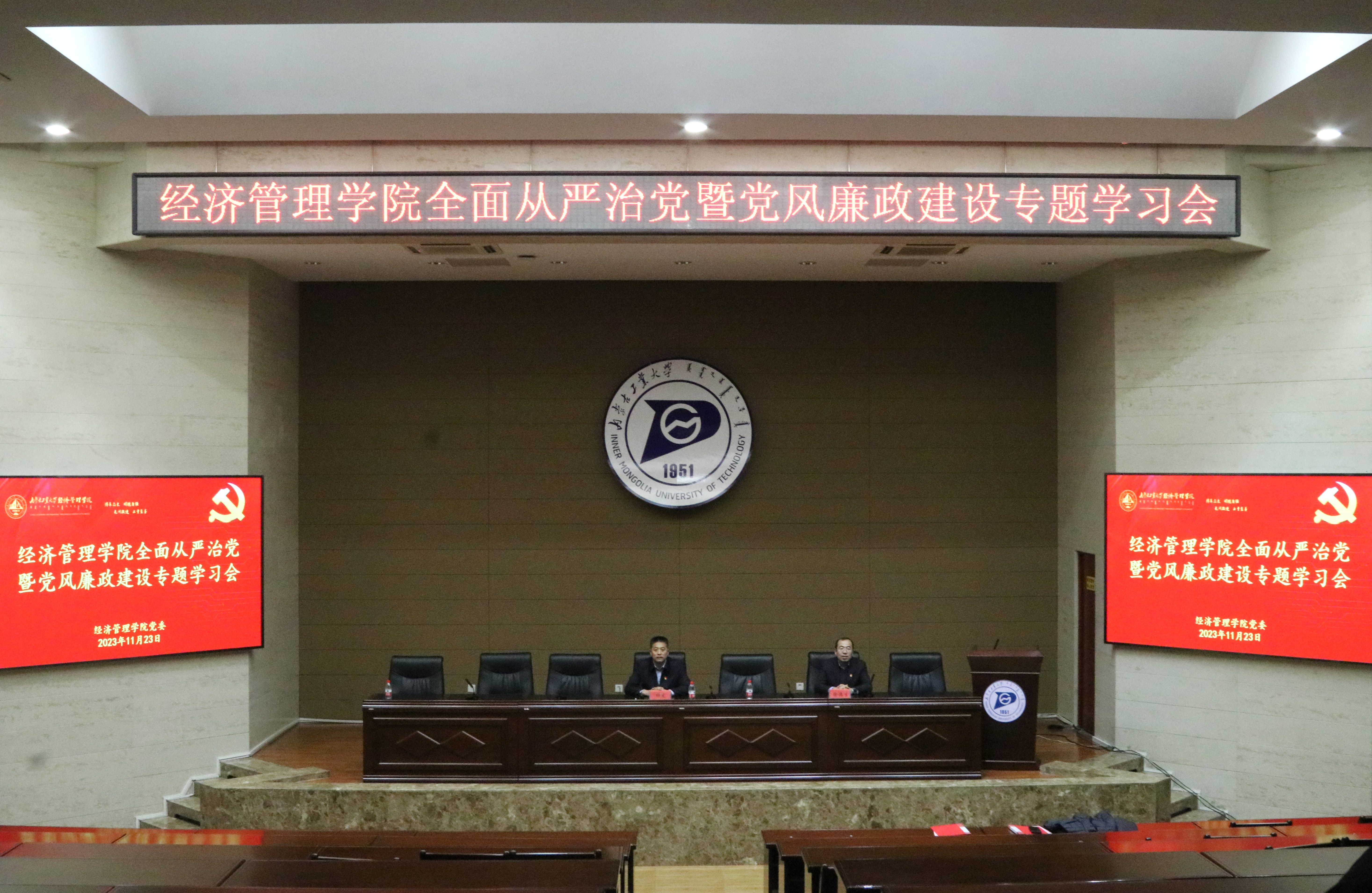 为深入学习贯彻党的二十大精神,进一步深化全面从严治党,加强学院党风廉政建设工作,11月23日下午,yl6809永利官网集团在明德楼第二报告厅召开全面从严治党暨党风廉政建设专题学习会,会议由学院党委副书记、副院长徐德生主持,学院全体师生党员参加。会议旨在全面加强党风廉政建设,提高学院党员教师的思想政治素质和廉洁自律意识。