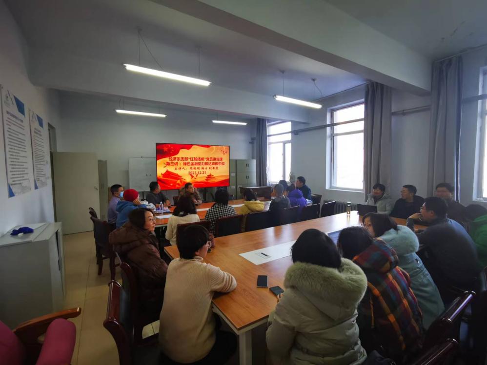 12月21日下午,经济系支部在424B研讨室举行“红船扬帆”党员讲党课系列活动第三讲。支部邀请周艳明老师做了《绿色金融助力碳达峰碳中和》的报告。经济系支部全体党员和部分非党员教师参加学习。