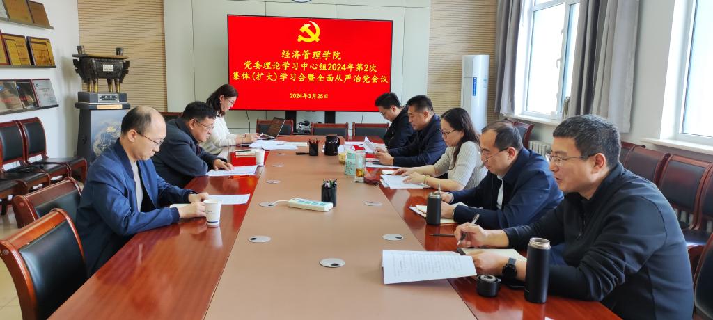 3月25日上午,学院党委理论学习中心组召开2024年第2次集体(扩大)学习会暨全面从严治党会议。学院领导班子成员,党委委员,党支部书记,团委书记,组织员参加。党委书记祁龙主持会议。