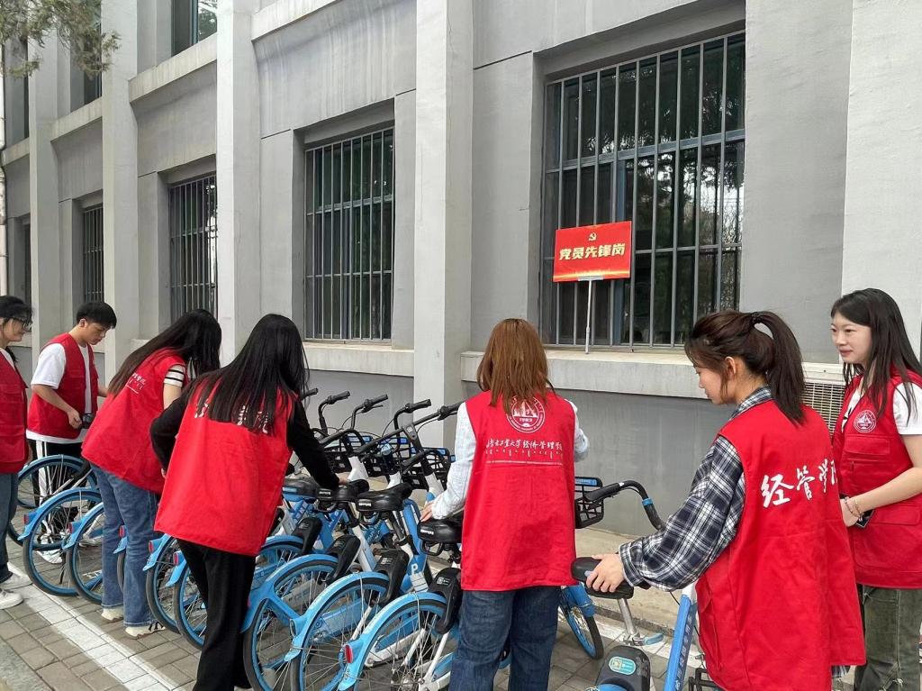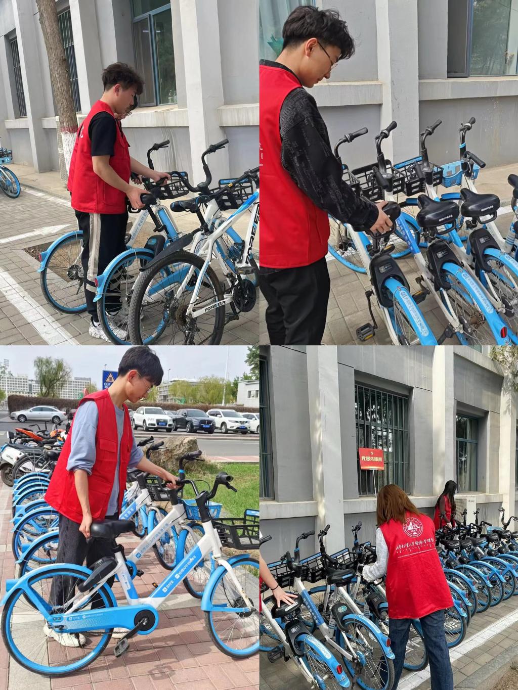 志愿者们依据前期分组名单进行了详细分工,将不在规定范围内的共享单车集中转移到指定的停车区域内,把歪斜、倒地的自行车扶起并摆放整齐,并对车内的残留垃圾进行清理。整个过程中,志愿者们充分发挥了团队协作精神,彼此配合,在互帮互助中顺利完成了单车摆放工作。并积极倡导大家有序摆放自行车,共同维护校园公共空间管理秩序。