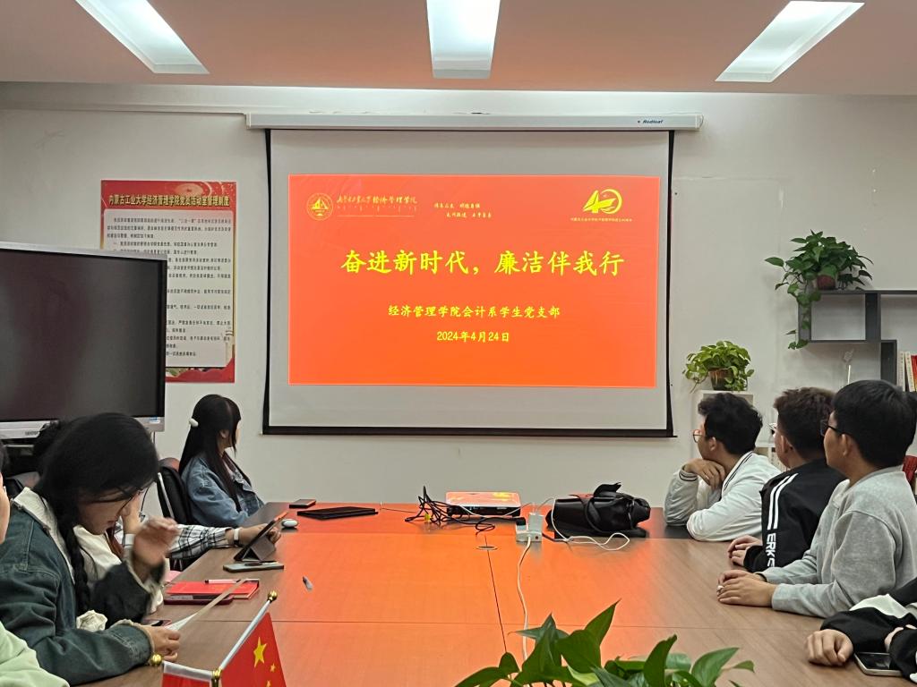为加强廉洁文化建设进校园工作,进一步厚植清正廉洁思想根基,提升师生的廉洁意识,2024年4月24日,yl6809永利官网集团会计系学生党支部开展了以“奋进新时代,廉洁伴我行”为主题的学习会,支部全体党员参加会议。