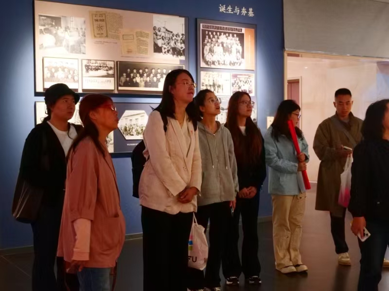 在教育馆内,师生通过沉浸式参观学习,系统回顾了北疆各民族交往交流交融的历史脉络。展区以“我们从哪里来?”“我们是谁?”“我们要到哪里去?”三大主题为线索,结合历史实物、影像资料与交互装置,生动展现了内蒙古各族人民守望相助、团结奋斗的实践成果。参观过程中,大家深入了解了“三千孤儿入内蒙”等民族团结故事,从历史与现实的对照中深化了对中华民族共同体意识的理解。