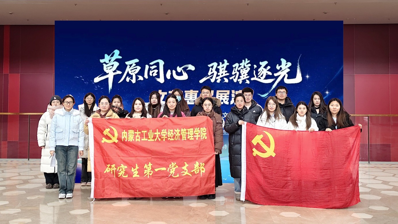 2025年12月22日,研究生第一党支部组织全体党员走进内蒙古自治区文化馆,开展“感悟草原大爱,铸牢民族同心”主题党日活动。本次活动通过文化体验与研讨交流相结合的方式,让研究生党员在沉浸中感悟民族团结精神,强化中华民族共同体意识。